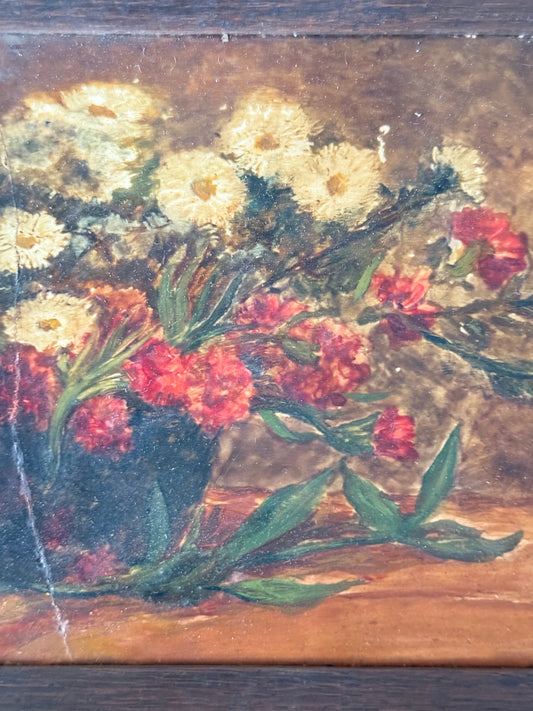 Floral Still Life on Tile - Belgium Freres La Louviere