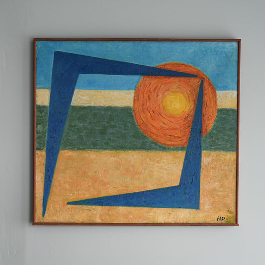 Sunburst with Blue Forms / (Monogrammed HP), (c. 1960s-1970s)