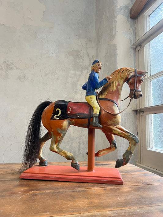 Wooden Fairground Racehorse & Jockey - Provenance Cottle's Circus