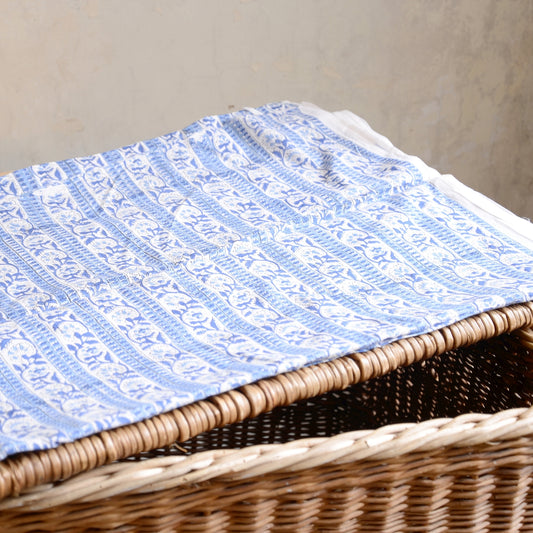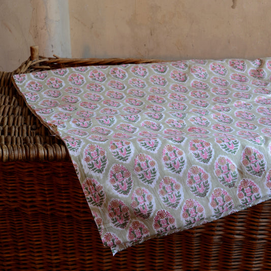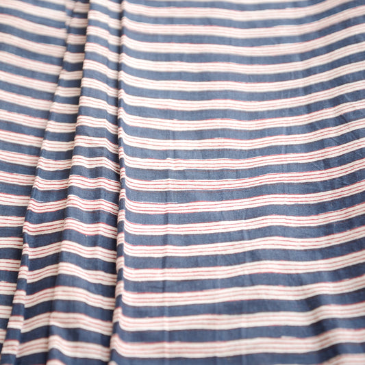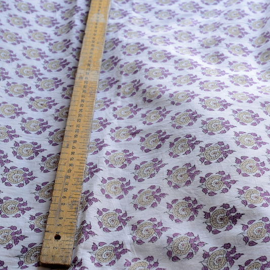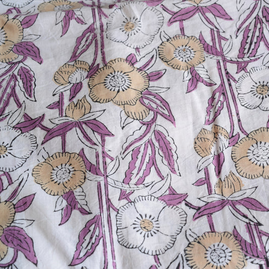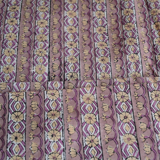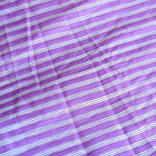 Block Print Cotton Fabric - Purple Stripe & Flowers