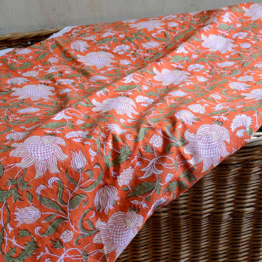 Block Print Cotton Fabric - Orange Arts & Crafts