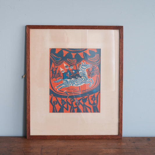Abstract Hardboard Block Print - Fon Klement | Dutch 1930-2000