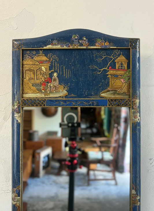 Early 20thC Blue Lacquered Chinoiserie Mirror
