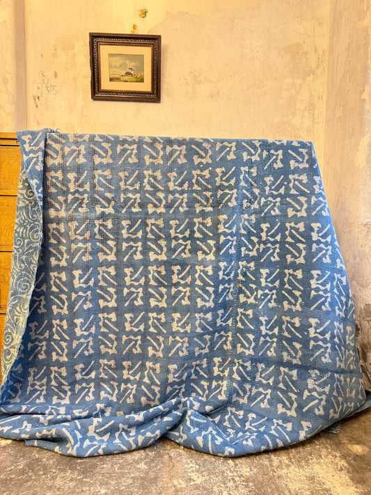 A Finestitch Indigo Kantha Quilt with Indigo over-print.