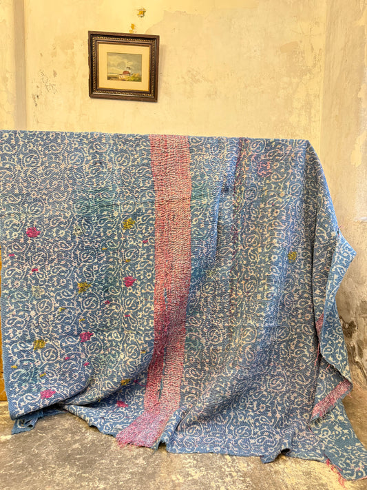 A Finestitch Indigo Kantha Quilt with Indigo over-print