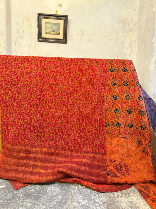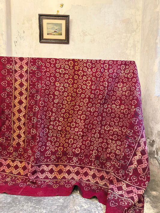 A Finestitch Kantha Quilt with Ajrakh over-print