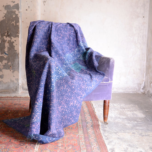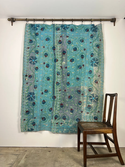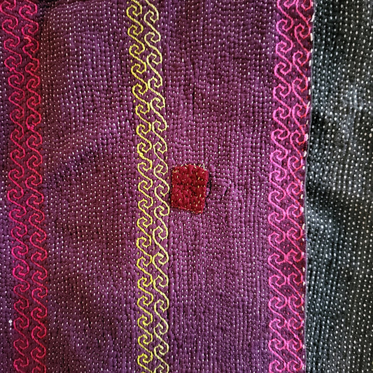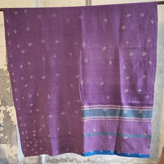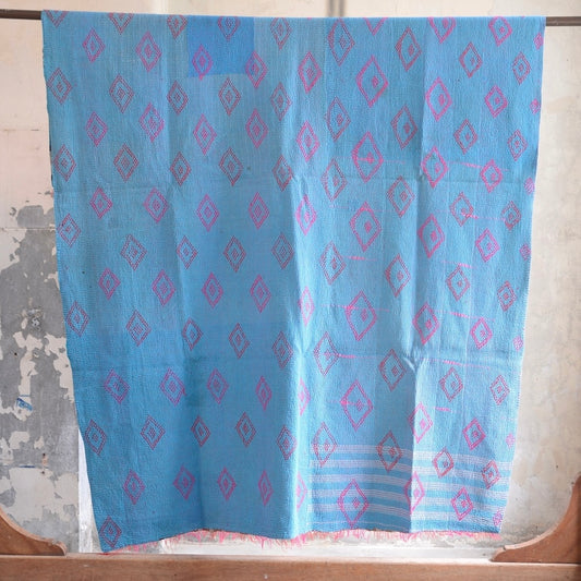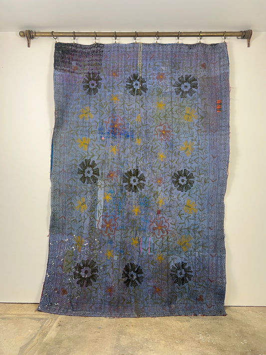 Vintage Indigo Finestitch Kantha Quilt - No 7