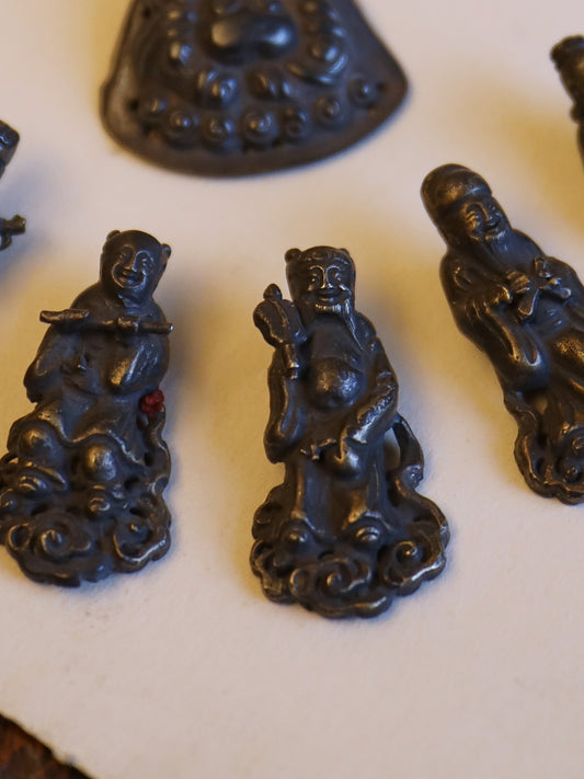 A Set of Six 19thC Chinese Figurine Hat Ornaments