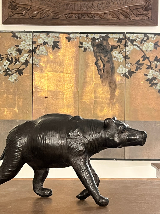 A 1960s leather Brown Bear Desk Toy.