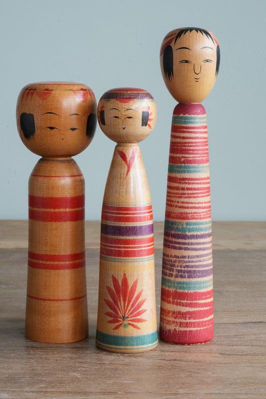 Set of 3 Traditional Japanese Folk Art Kokeshi Dolls 100