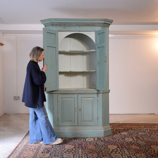 Architectural Barrel Back Painted Corner Cabinet c1810