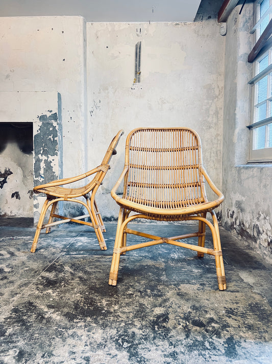 Pair Large Italian Bamboo & Cane Chairs