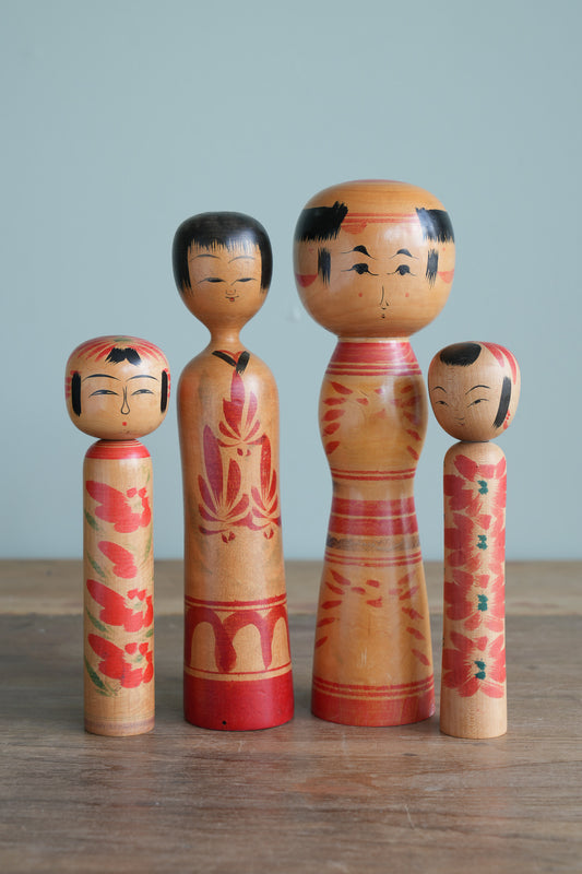 Set of 4 Traditional Japanese Folk Art Kokeshi Dolls 102