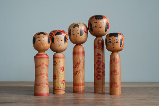 Set of 5 Traditional Japanese Folk Art Kokeshi Dolls 096