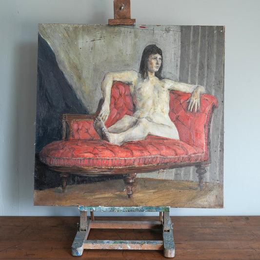 Reclining Nude on a Red Chaise / Scottish School, (c. 1950s)