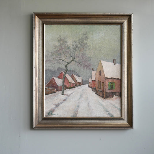 Village Street in Snow / W DeCort, (c. Mid-20th Century)