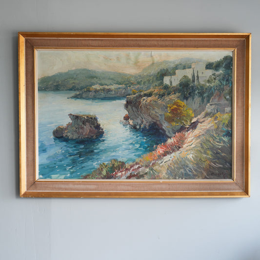 Clifftop Village, Late Sun / Unknown Artist (Illegibly Signed), (c. 20th century)