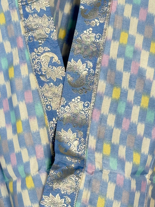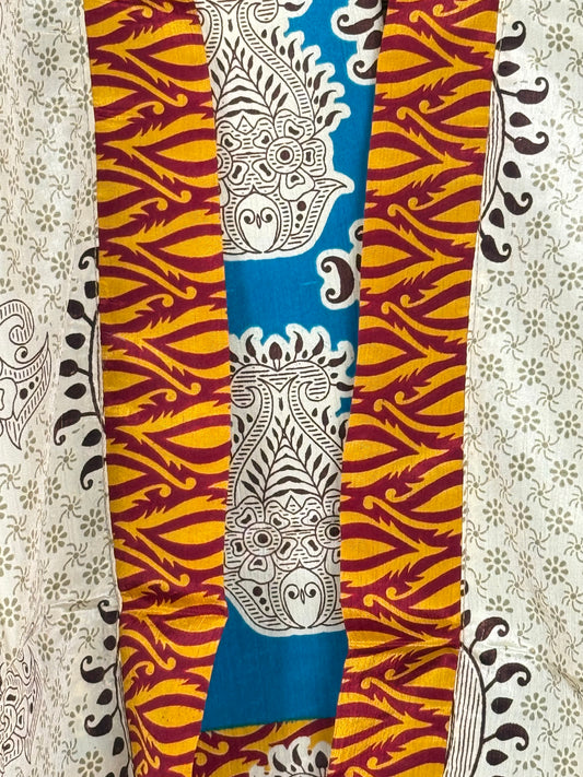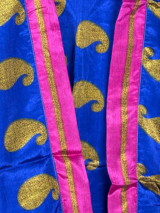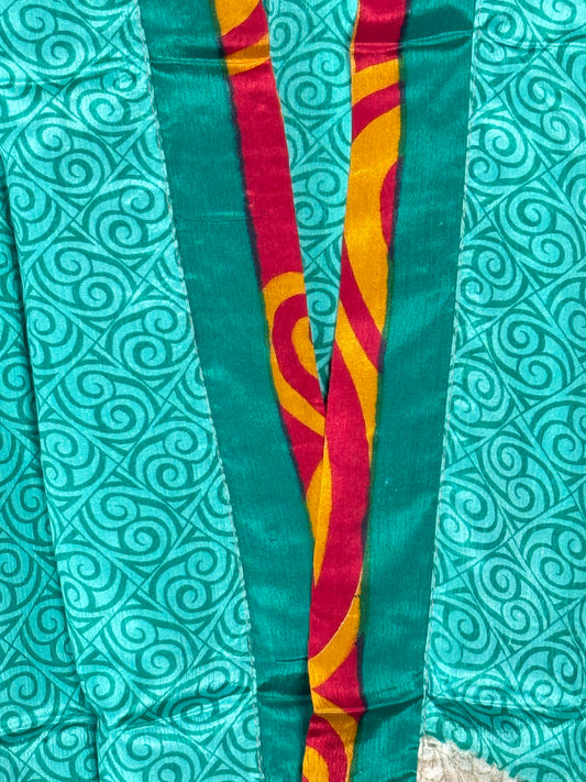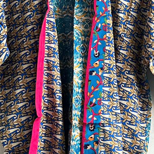 Our beautiful silk blend shirts an shrugs are crafted from carefully selected vintage sarees, making each kimono truly one-of-a-kind and also fully sustainable.