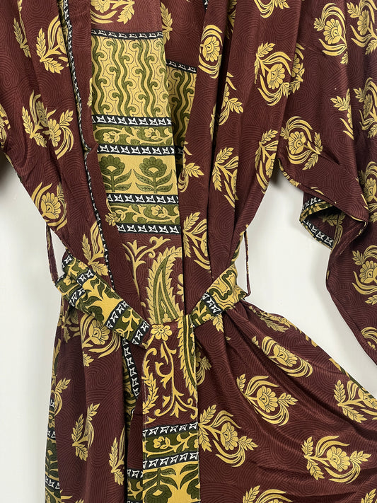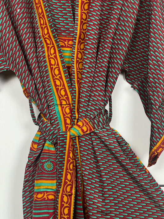 Our beautiful silk blend kimonos are crafted from carefully selected vintage sarees, making each kimono truly one-of-a-kind and also fully sustainable.