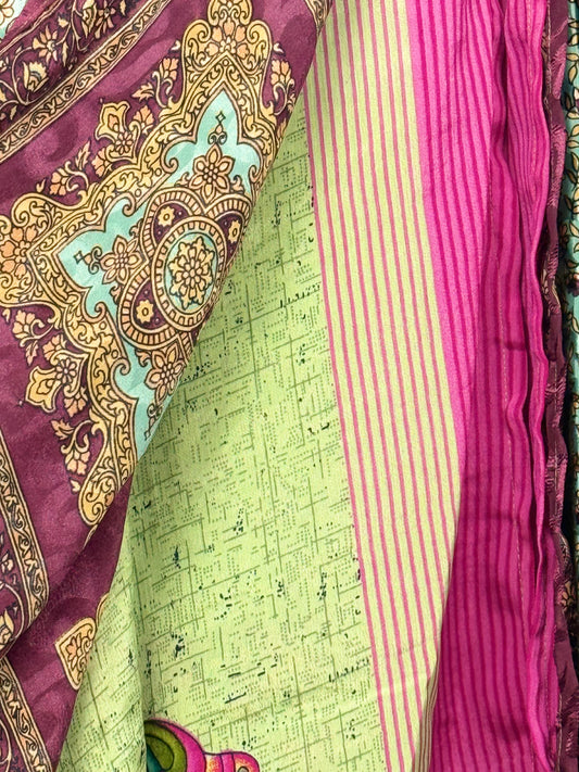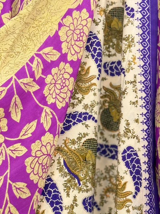 Our beautiful silk blend wrap skirts are crafted from carefully selected vintage sarees, making each skirt truly one-of-a-kind and also fully sustainable.