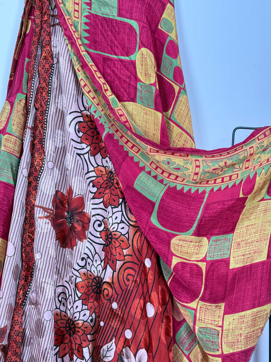 Our beautiful silk blend wrap skirts are crafted from carefully selected vintage sarees, making each skirt truly one-of-a-kind and also fully sustainable.
