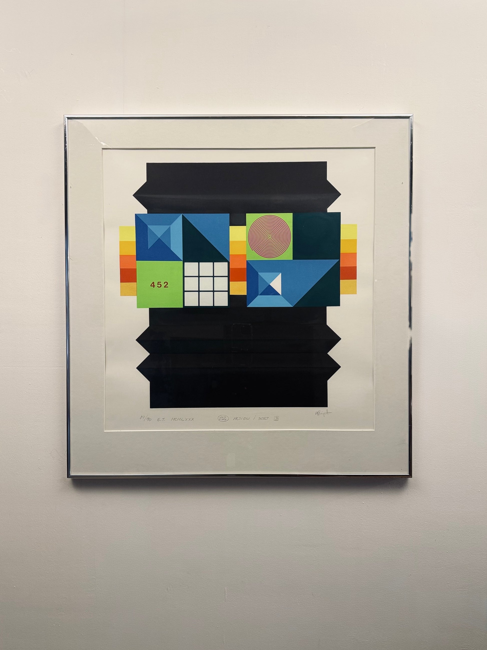 Abstract geometric composition, artist approved colour lithograph by Karl Åge Riget.