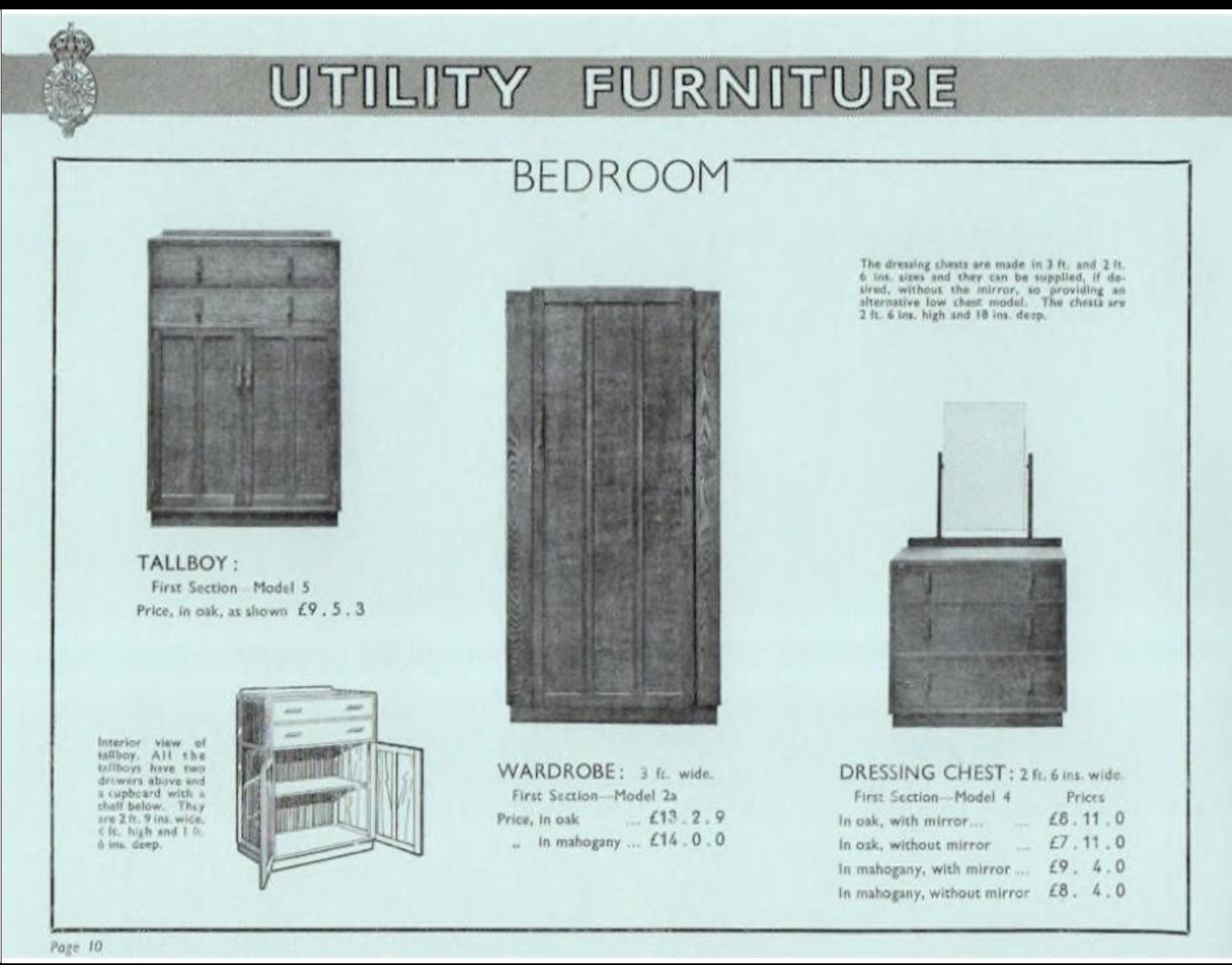 The committee produced approved designs that were published in the Utility Furniture Catalogue of 1943. The aim was to ensure the production of strong, well-designed furniture which made efficient use of timber. The Art and Crafts movement influenced the designs, which were considered to be simplistic due to their lack of decoration (which was contrary to the popular taste of the immediate pre-war period). Furniture based on these designs was constructed by a number of firms around the country.