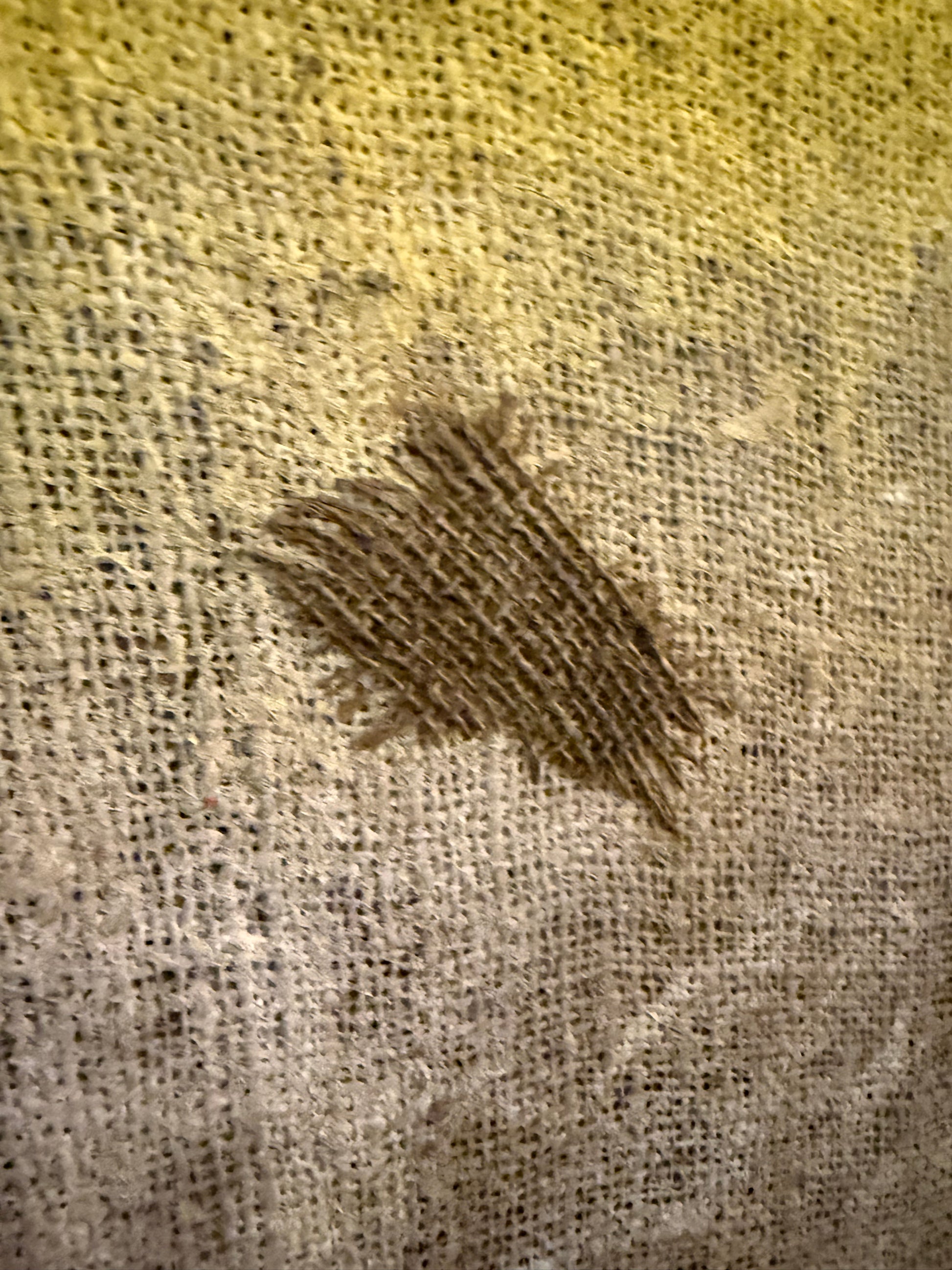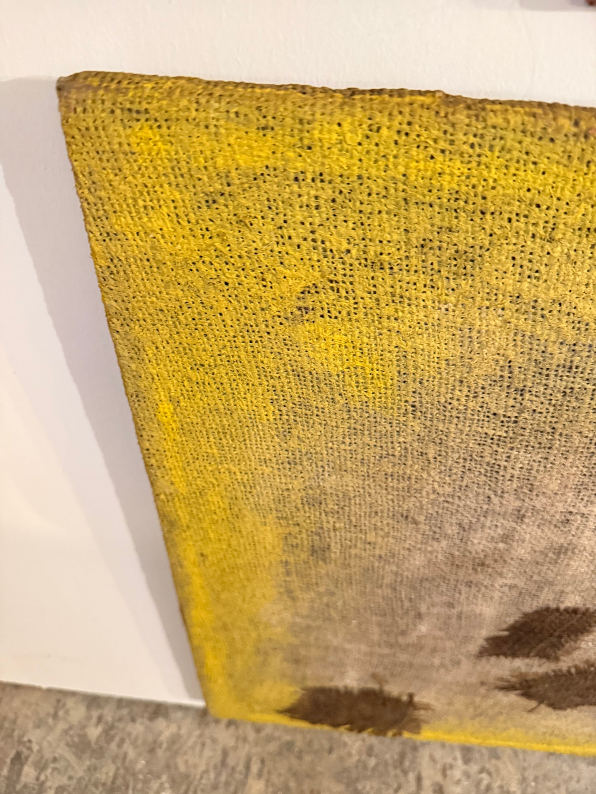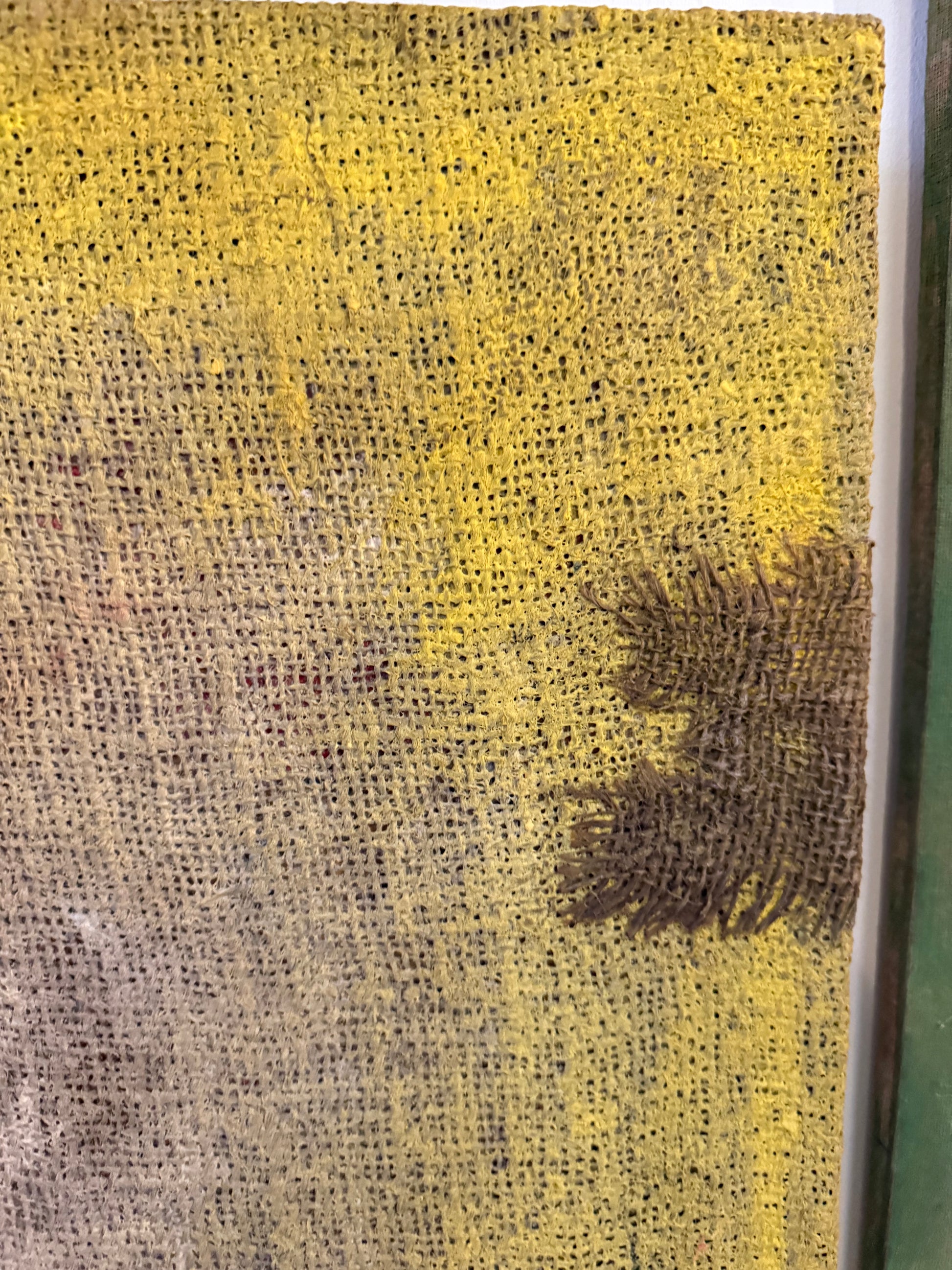 Due to the nature of the construction, they are either a stretched cotton calico or woven sack fabric stretched over board, they have a textured look and feel.