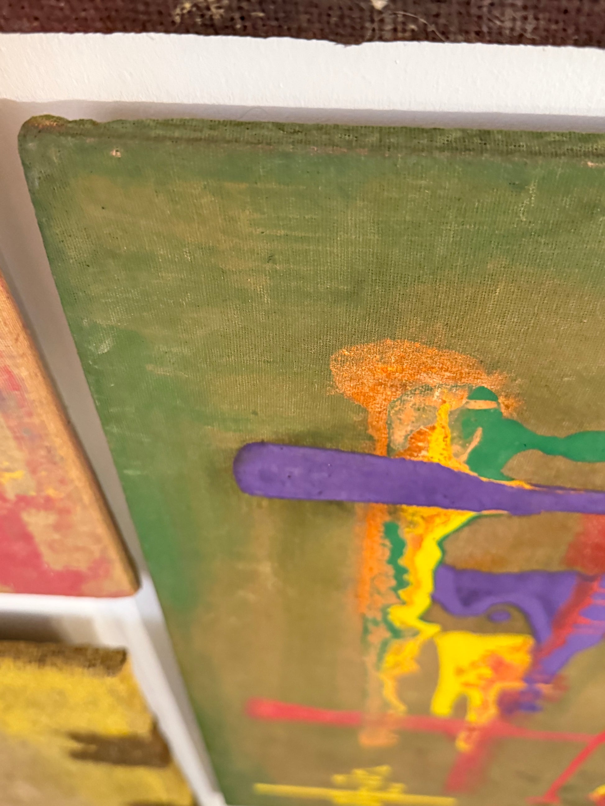 This is an original painting from a collection of other similar yet dissimilar pieces. Some are signed George and date to the 1990,s although they have the feel of 1970's.
