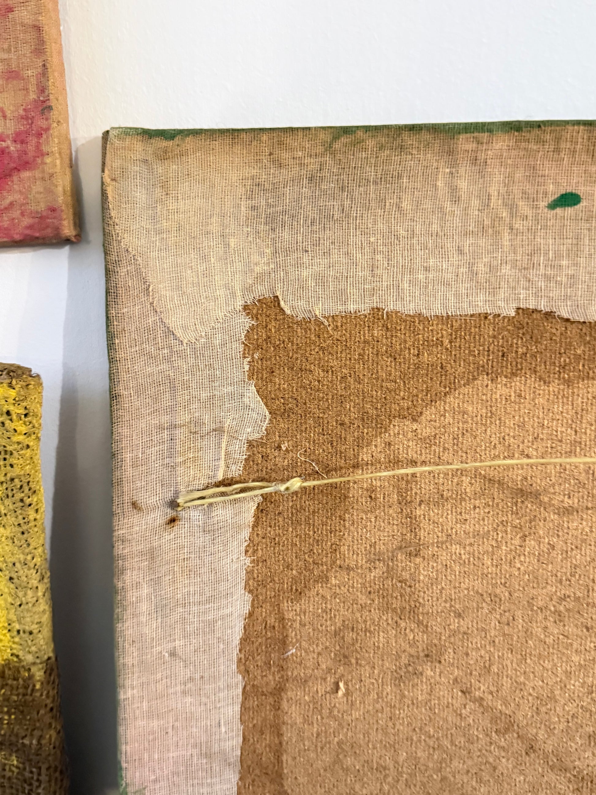 Due to the nature of the construction, they are either a stretched cotton calico or woven sack fabric stretched over board, they have a textured look and feel.