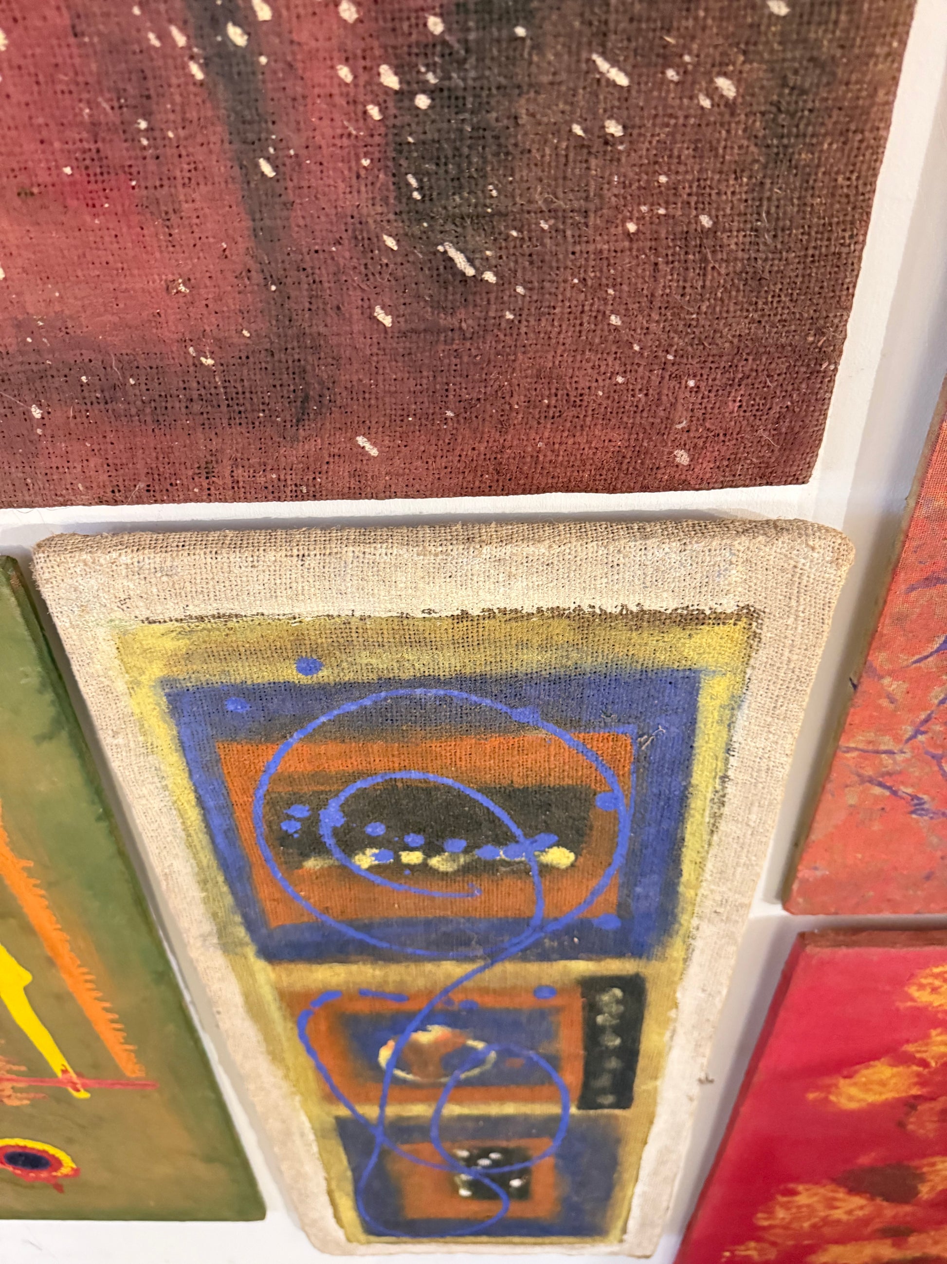 This is an original painting from a collection of other similar yet dissimilar pieces. Some are signed George and date to the 1990,s although they have the feel of 1970's.