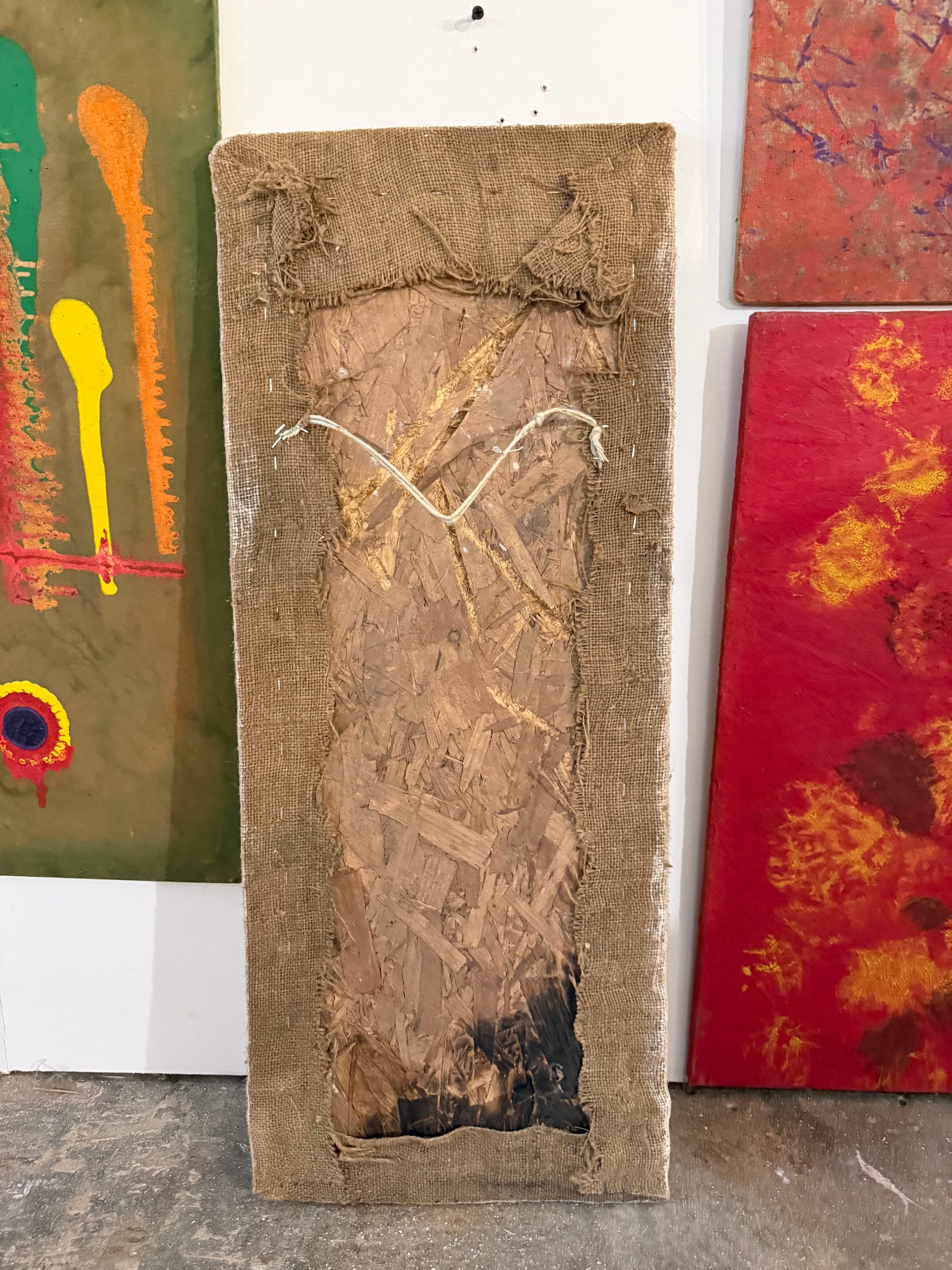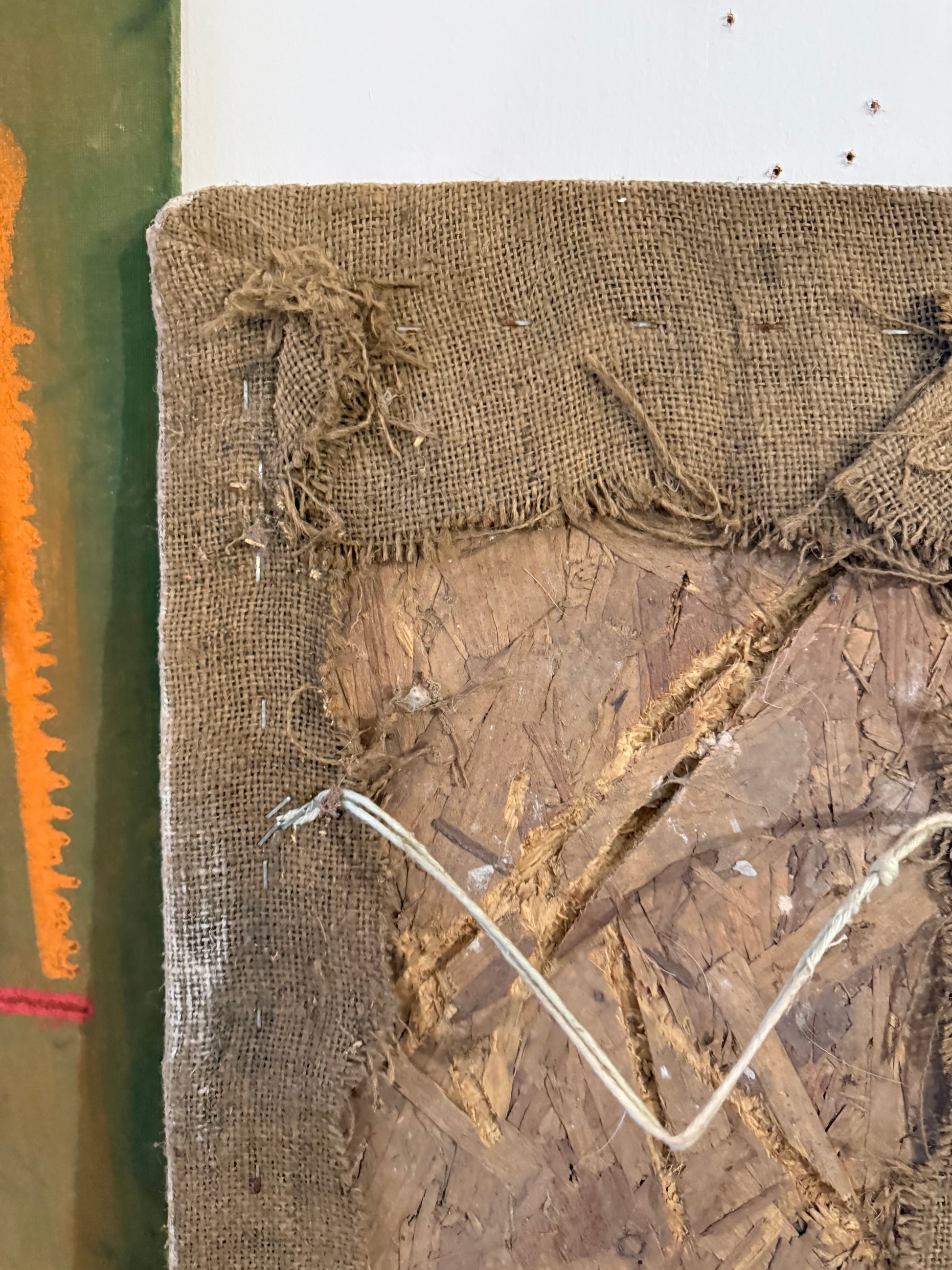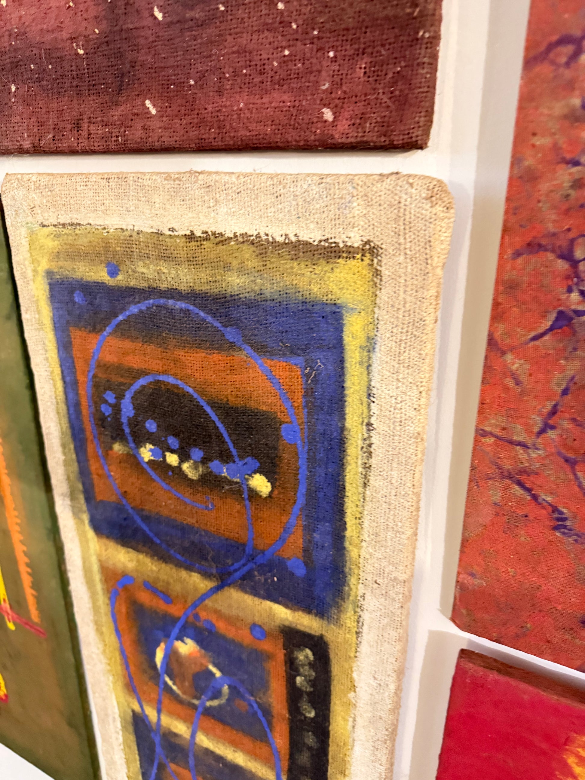 Due to the nature of the construction, they are either a stretched cotton calico or woven sack fabric stretched over board, they have a textured look and feel.