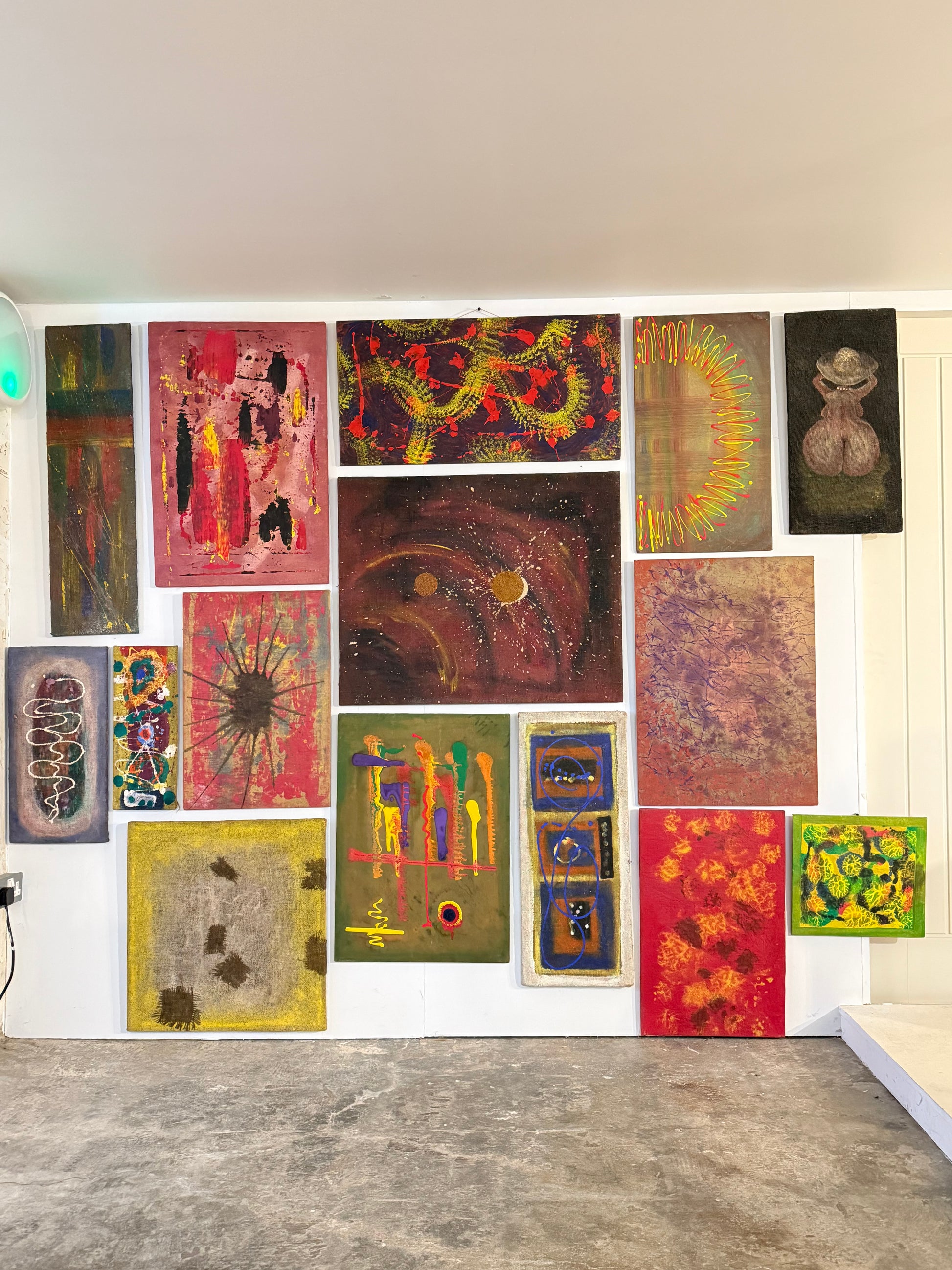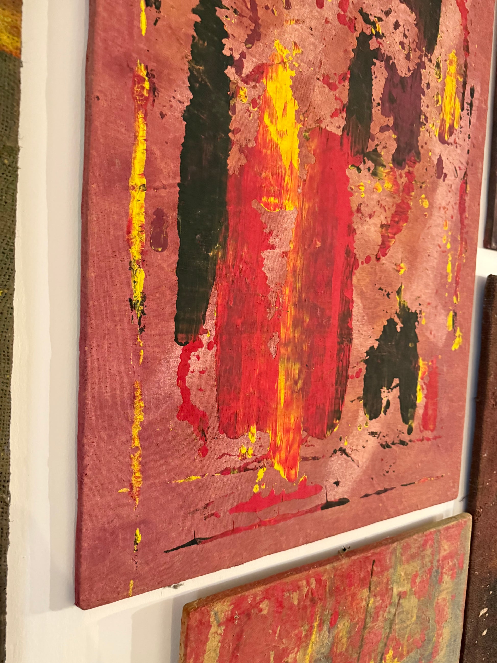 This is an original painting from a collection of other similar yet dissimilar pieces. Some are signed George and date to the 1990,s although they have the feel of 1970's.