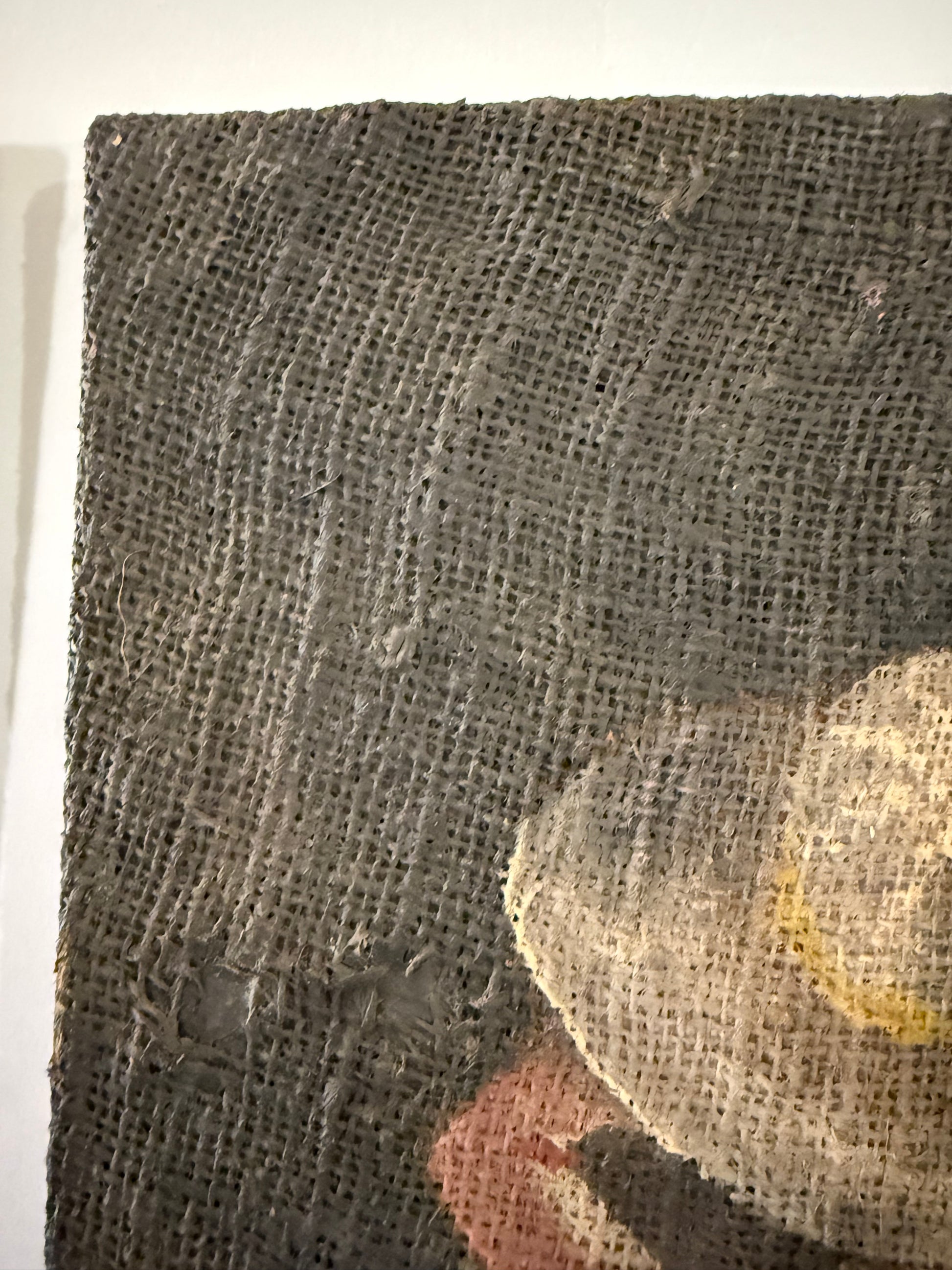 Due to the nature of the construction, they are either a stretched cotton calico or woven sack fabric stretched over board, they have a textured look and feel.