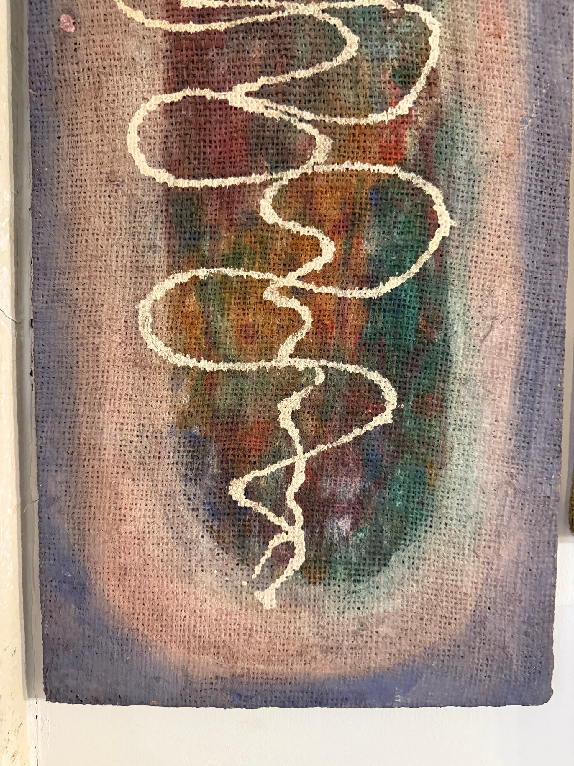 This is an original painting from a collection of other similar yet dissimilar pieces. Some are signed George and date to the 1990,s although they have the feel of 1970's.