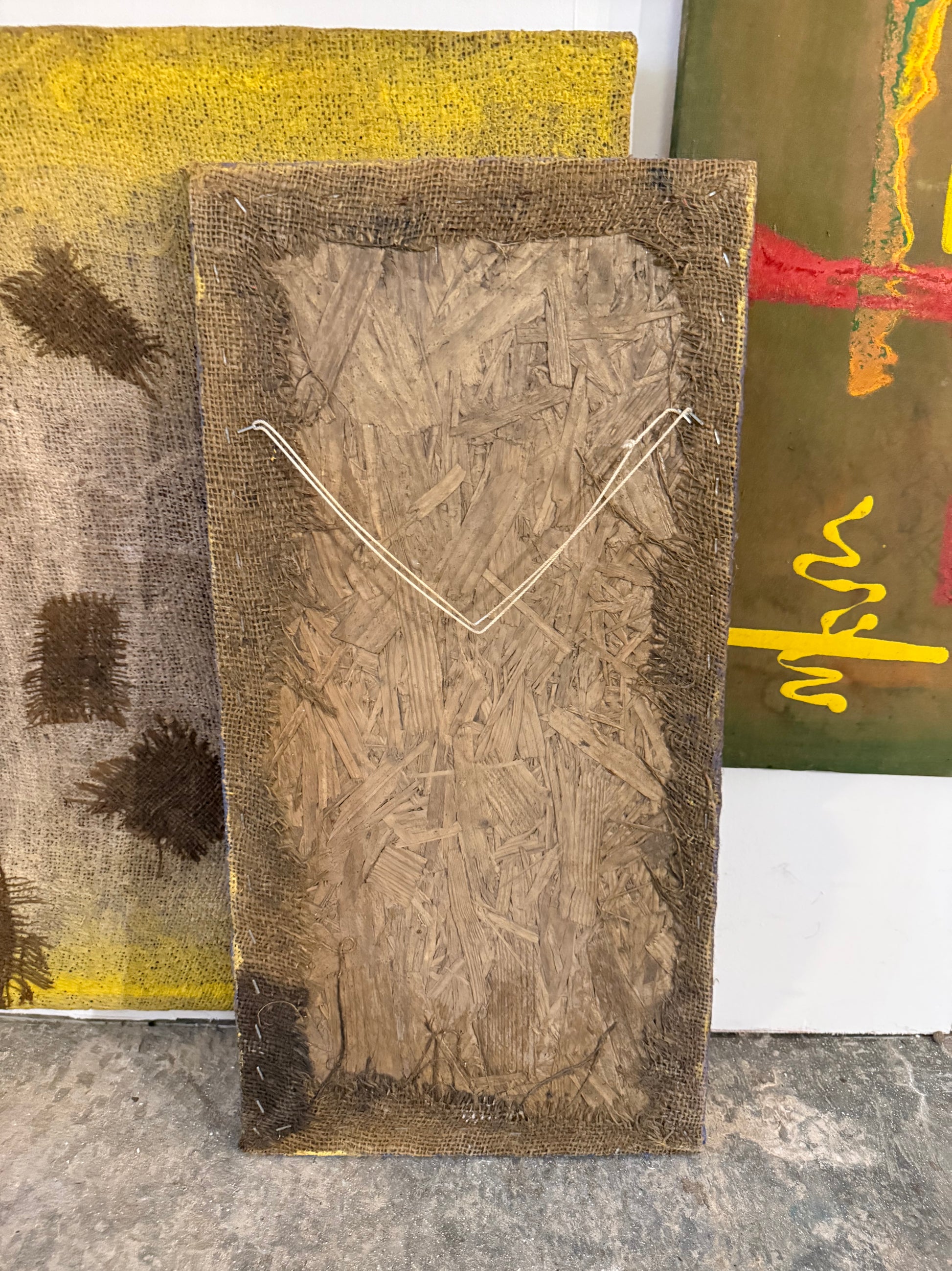 Due to the nature of the construction, they are either a stretched cotton calico or woven sack fabric stretched over board, they have a textured look and feel.
