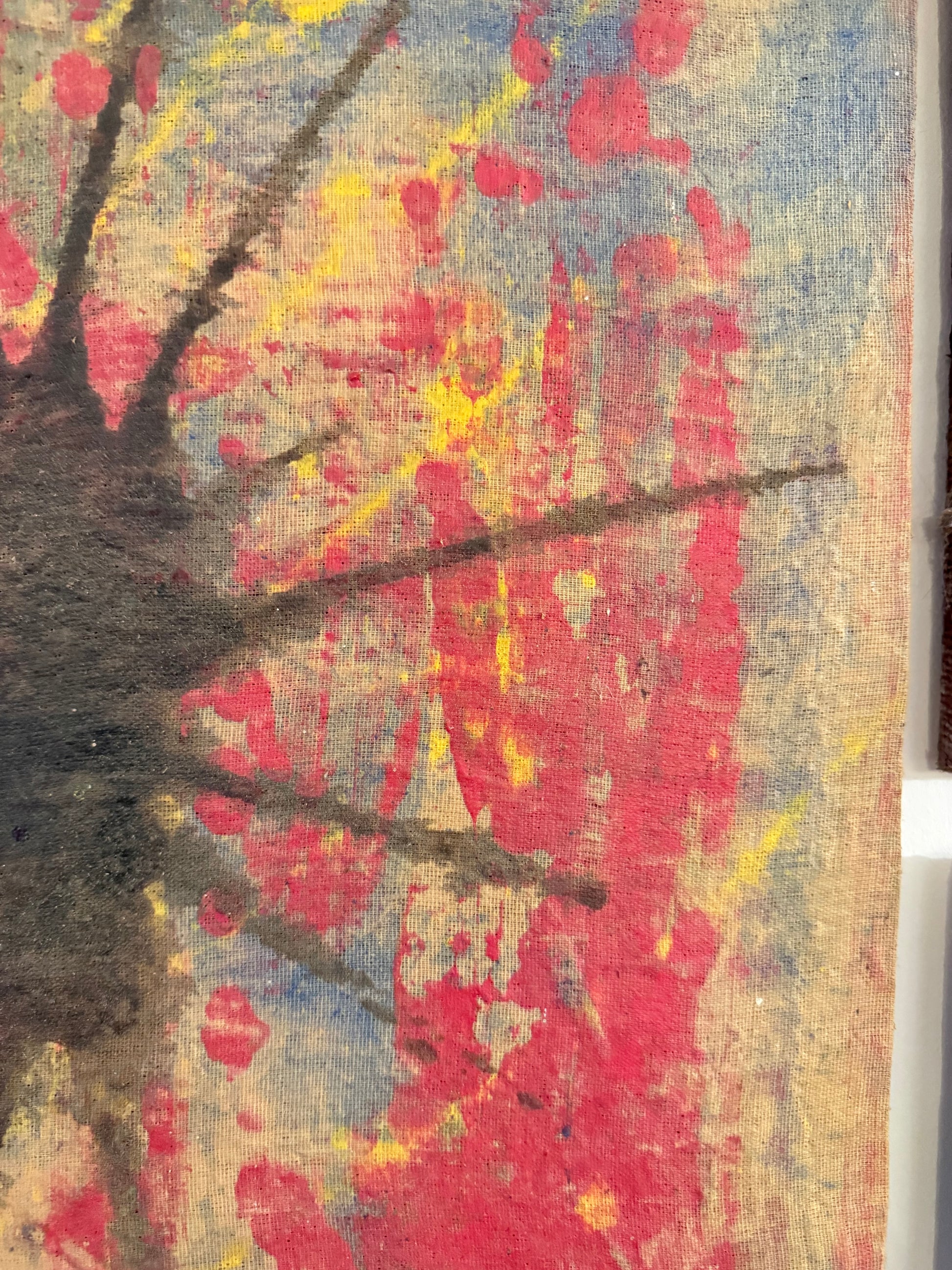 Due to the nature of the construction, they are either a stretched cotton calico or woven sack fabric stretched over board, they have a textured look and feel.