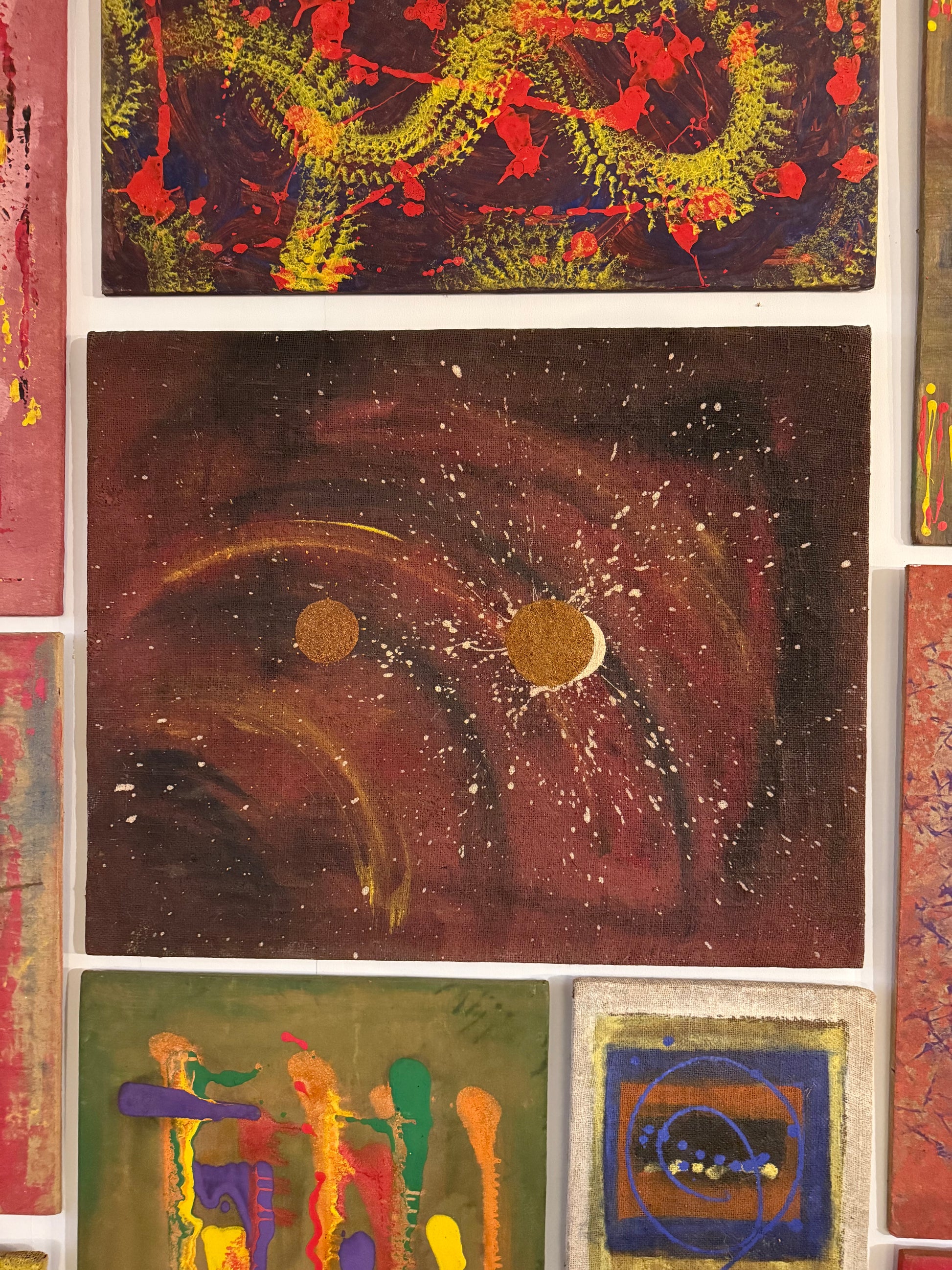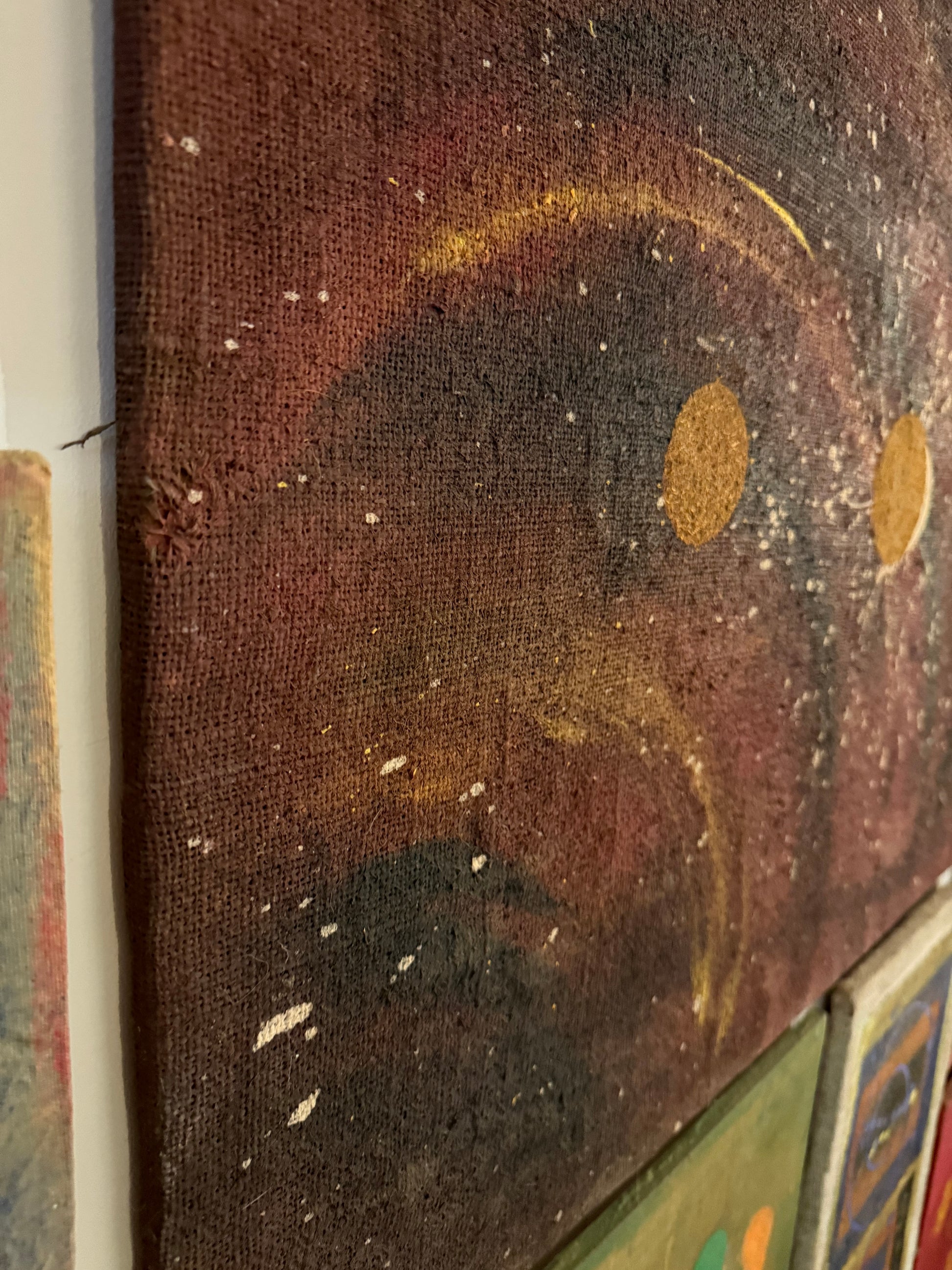 This is an original painting from a collection of other similar yet dissimilar pieces. Some are signed George and date to the 1990,s although they have the feel of 1970's.
