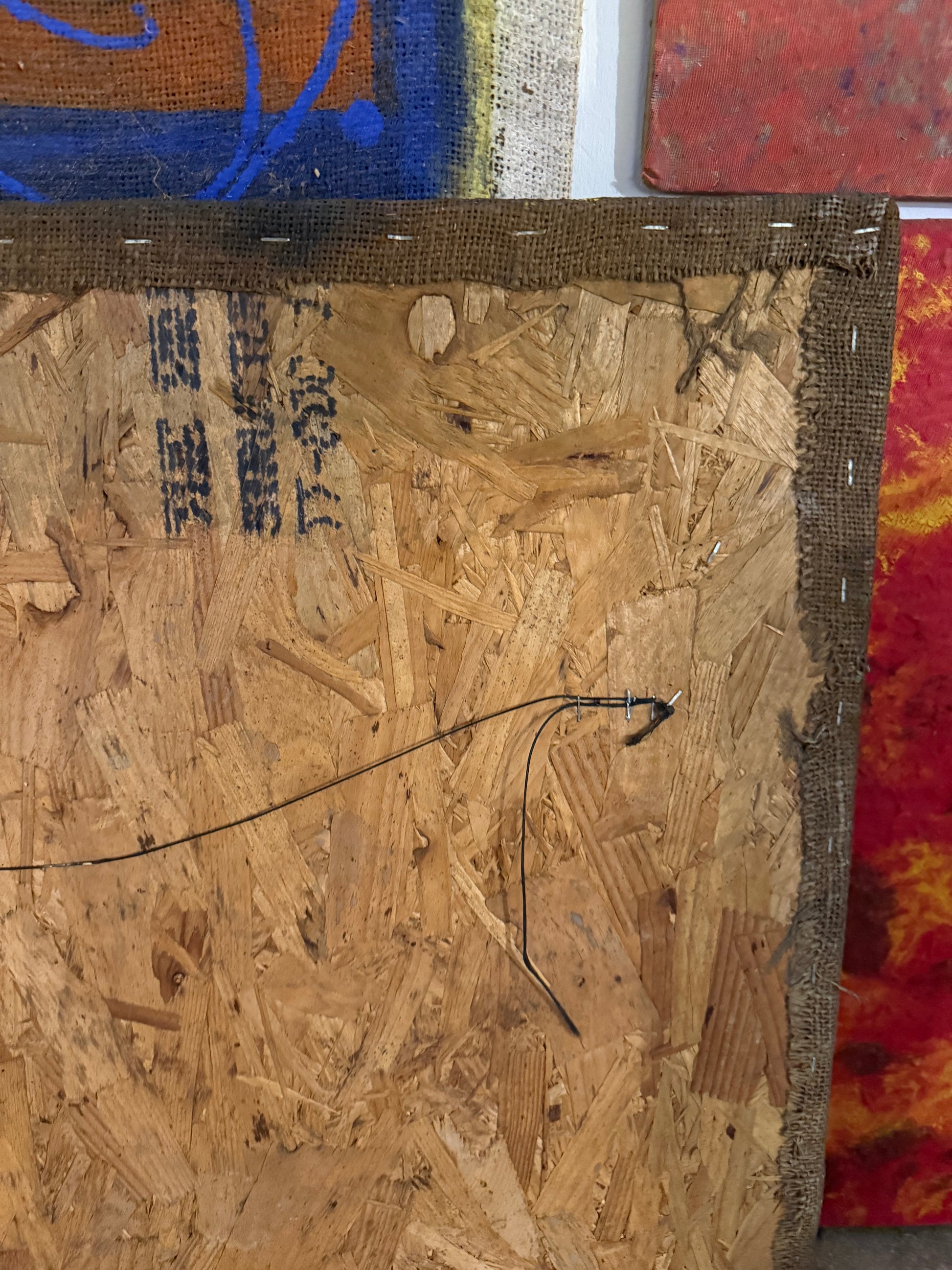 Due to the nature of the construction, they are either a stretched cotton calico or woven sack fabric stretched over board, they have a textured look and feel.