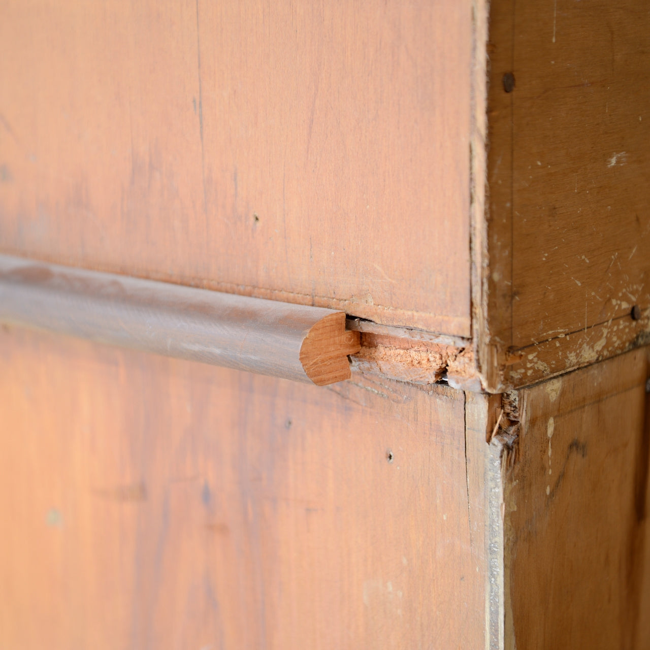 In shop used condition, structurally sound, with a small piece of moulding missing from one side. Some evidence of historic repairs.