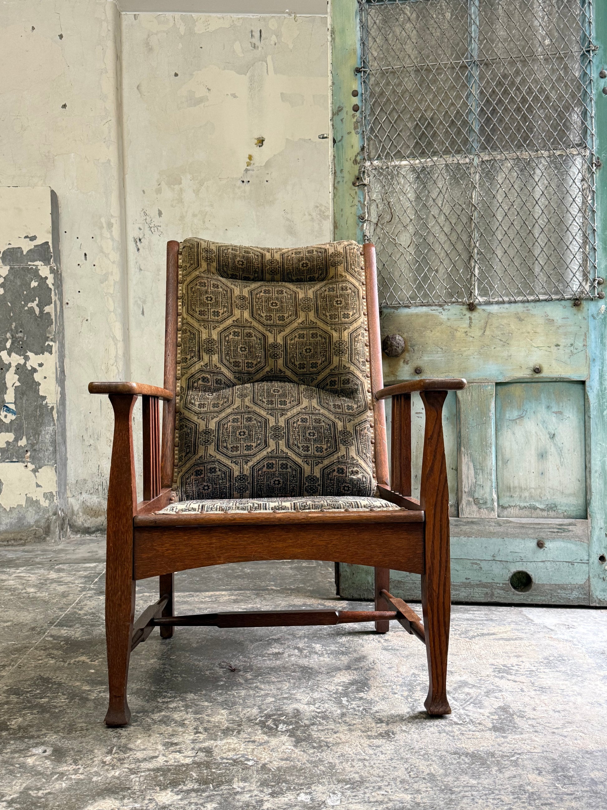 Arts and Crafts Oak Framed Armchair