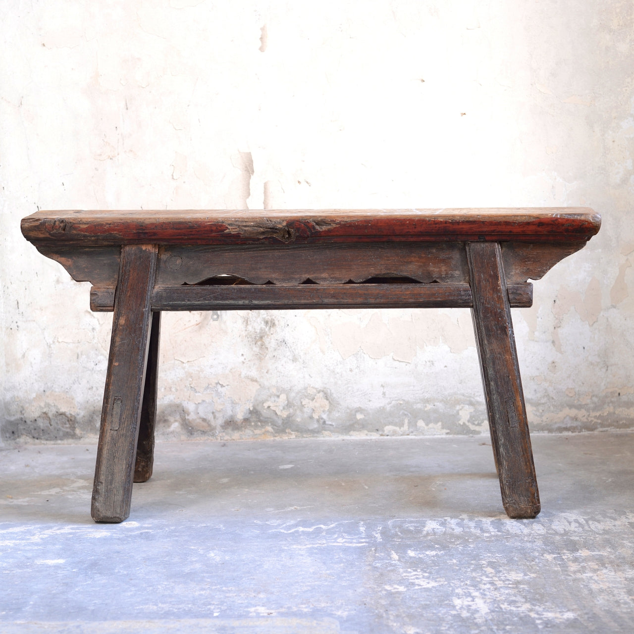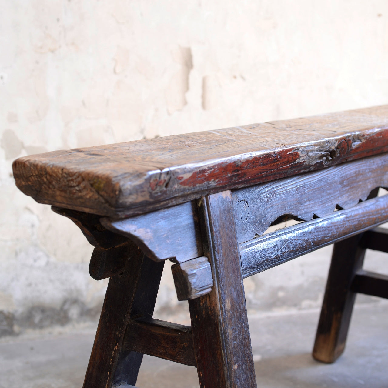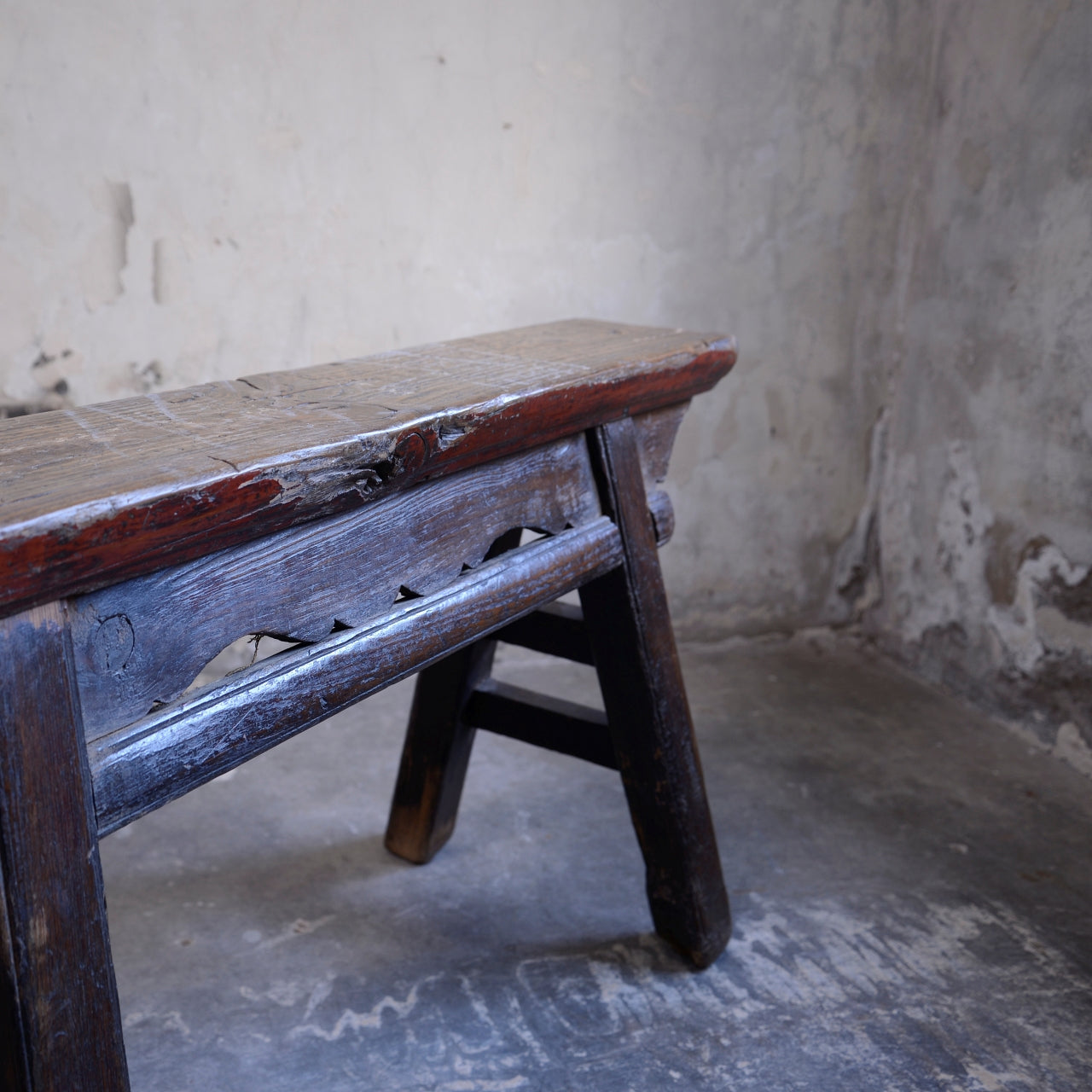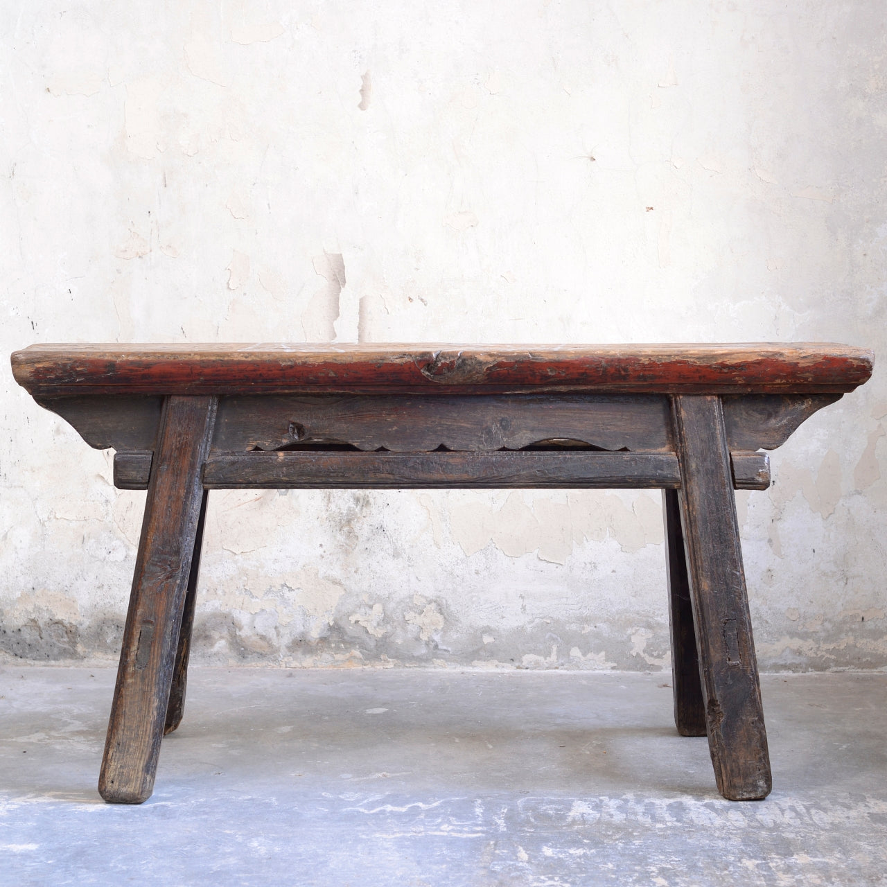 Late Qing dynasty, 130 years old. Made from Elm with some original red lacquer.