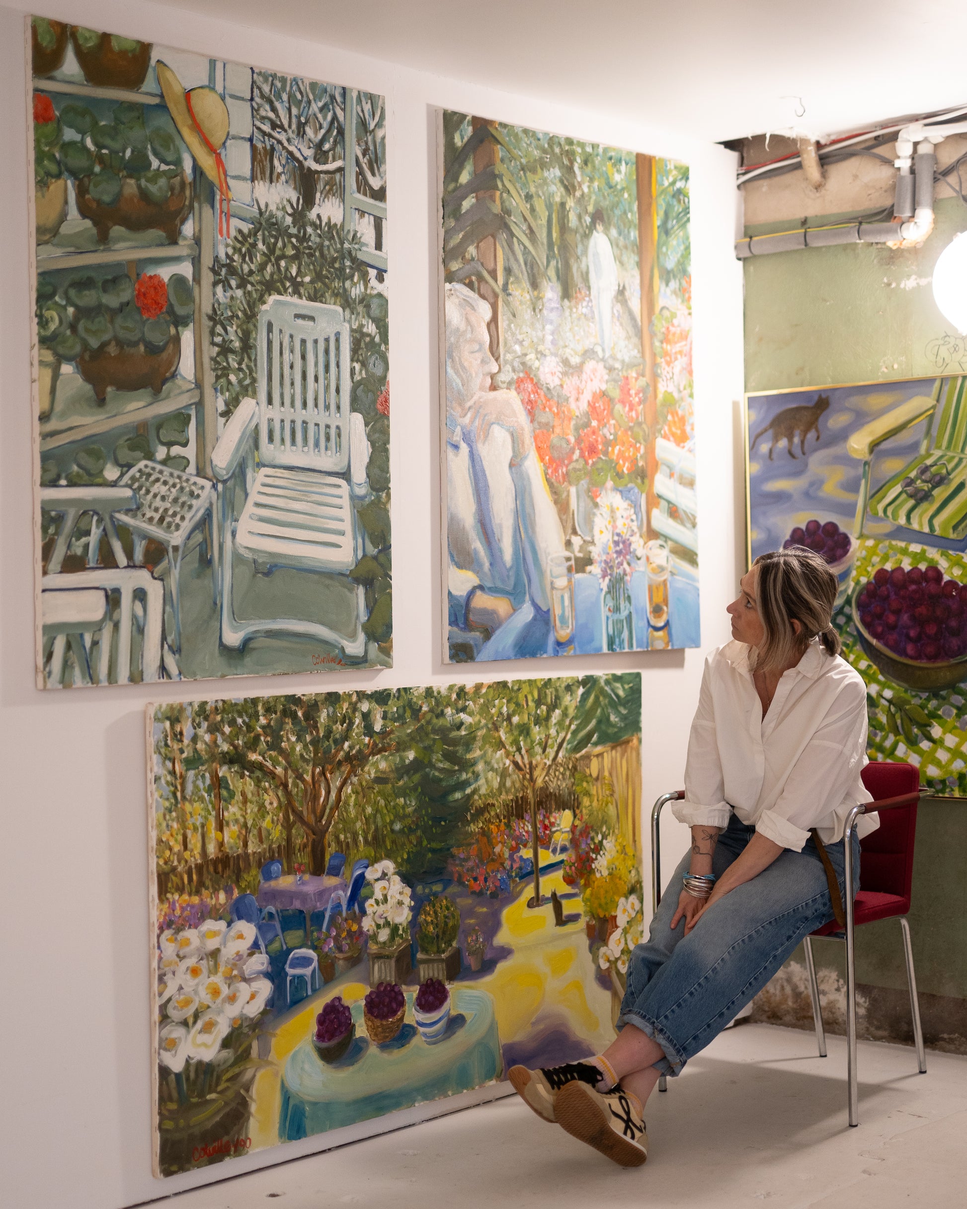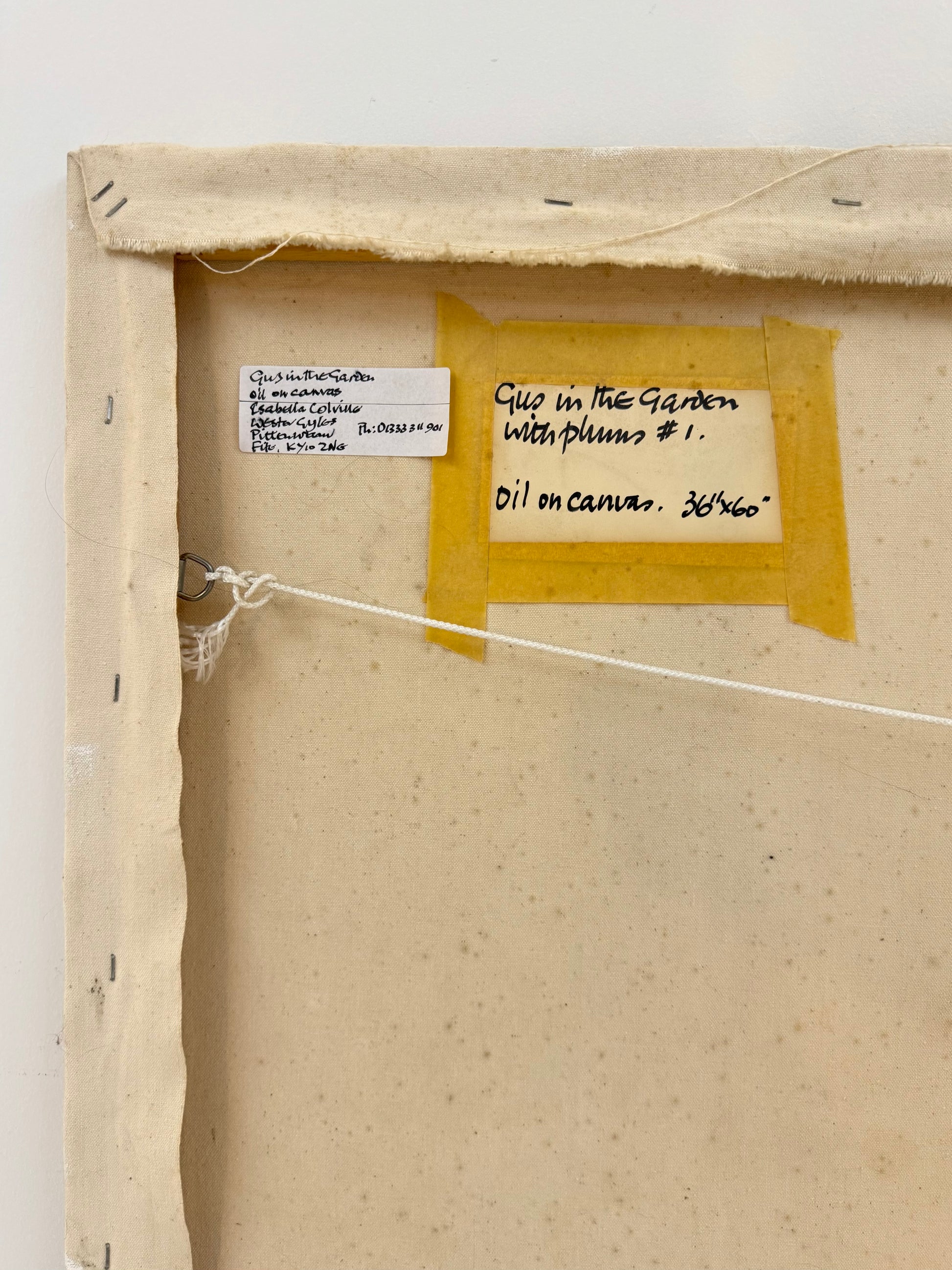 Gus in the garden with Plums #1 by Isobel Colville (Scottish 1935 - 2025).