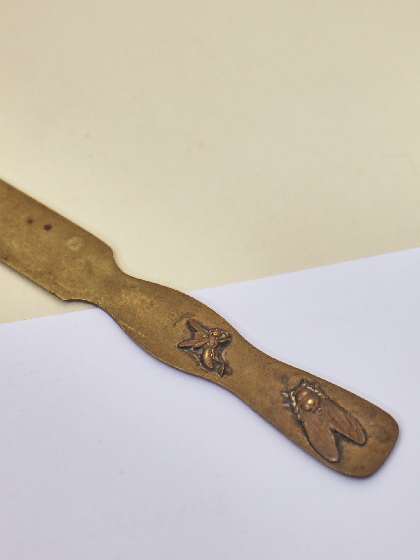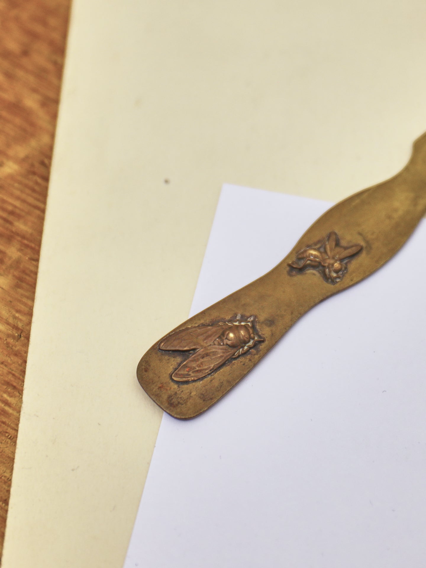 A Japanese brass page turner, Meiji Period (1868-1912) ~ Flowers & Insects