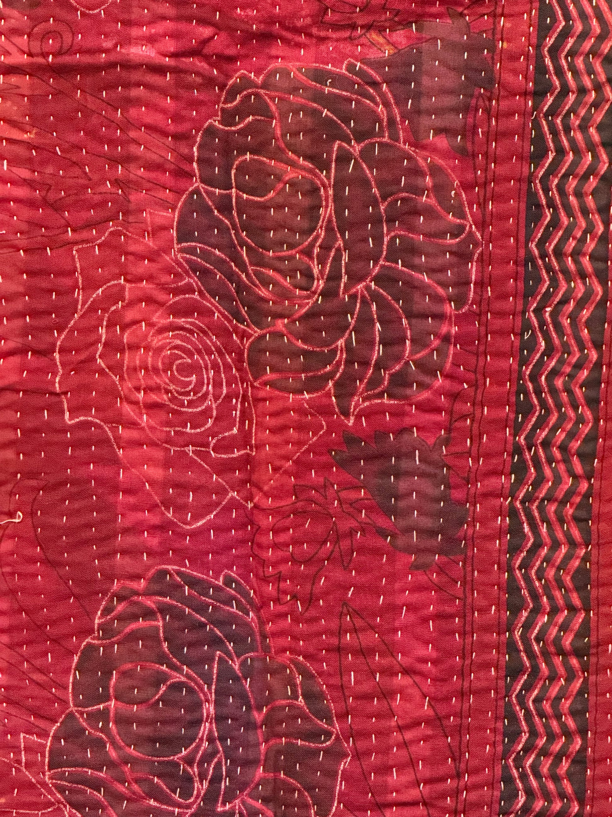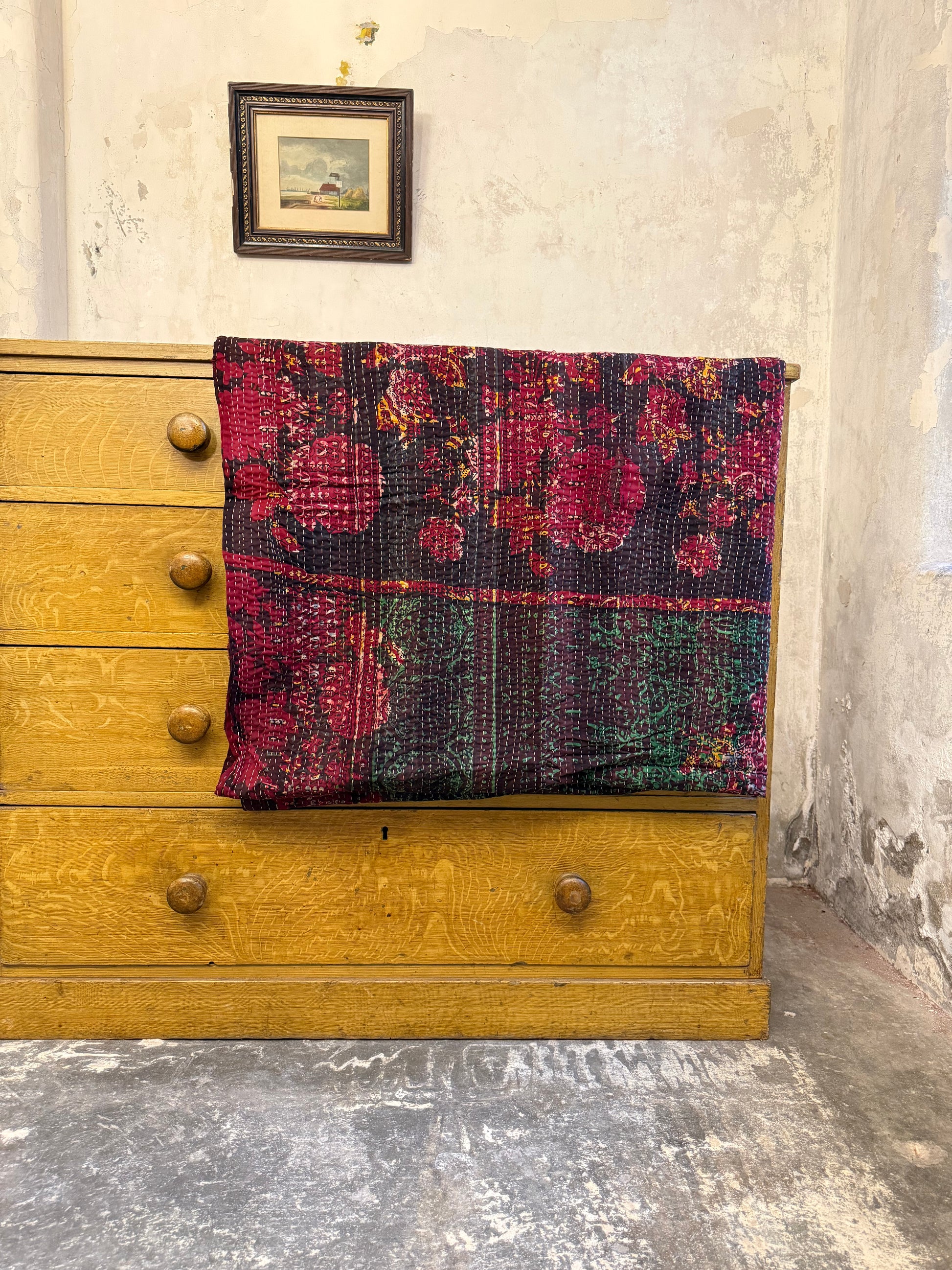 Beautiful individual and unique hand stitched vintage cotton Kantha quilt with fine stitching. Now with a Bahri over print which has created a wonderful colour and texture.