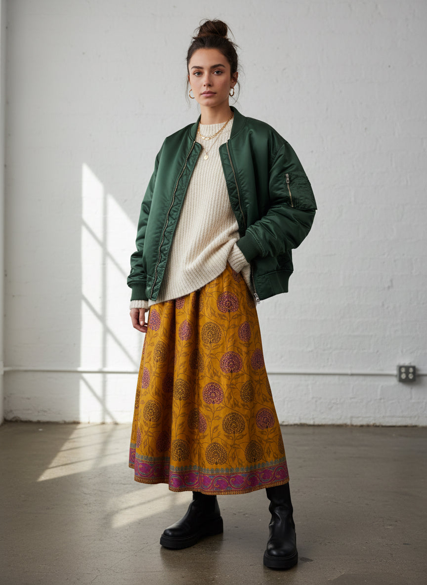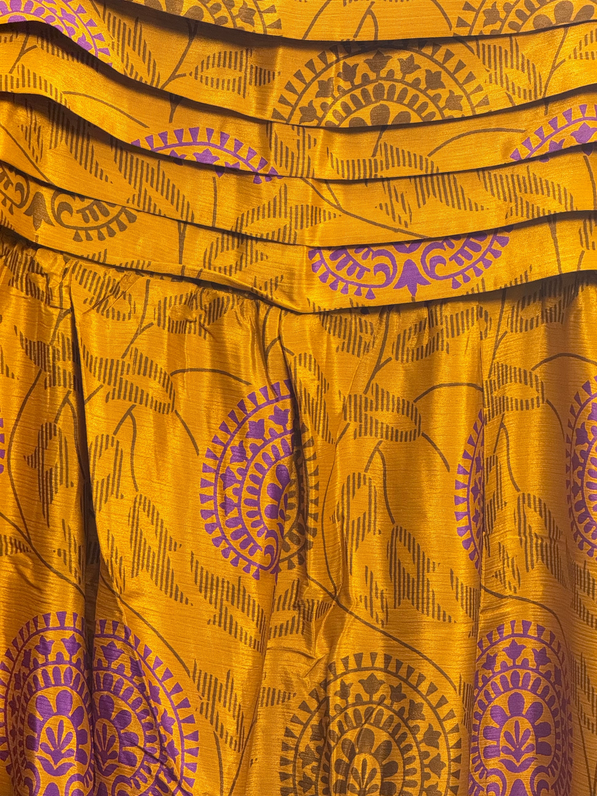 Our beautiful silk blend skirts are crafted from carefully selected vintage sarees, making each skirt truly one-of-a-kind and also fully sustainable.