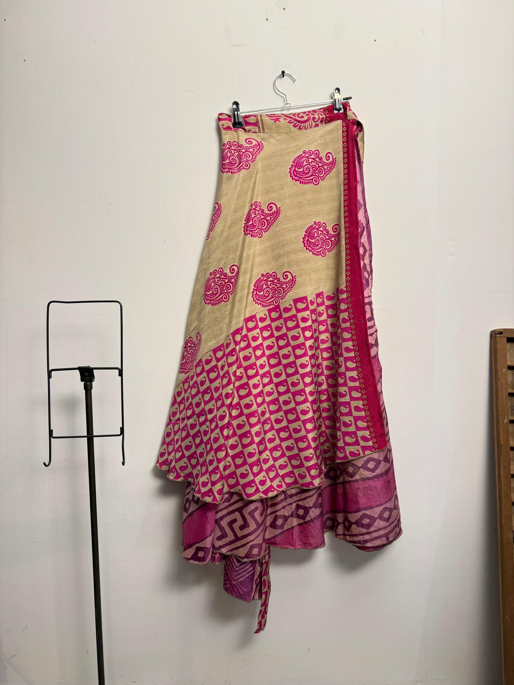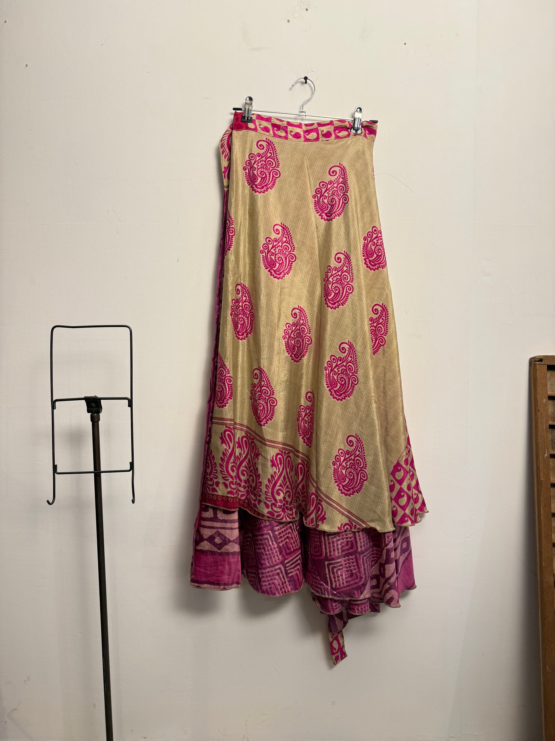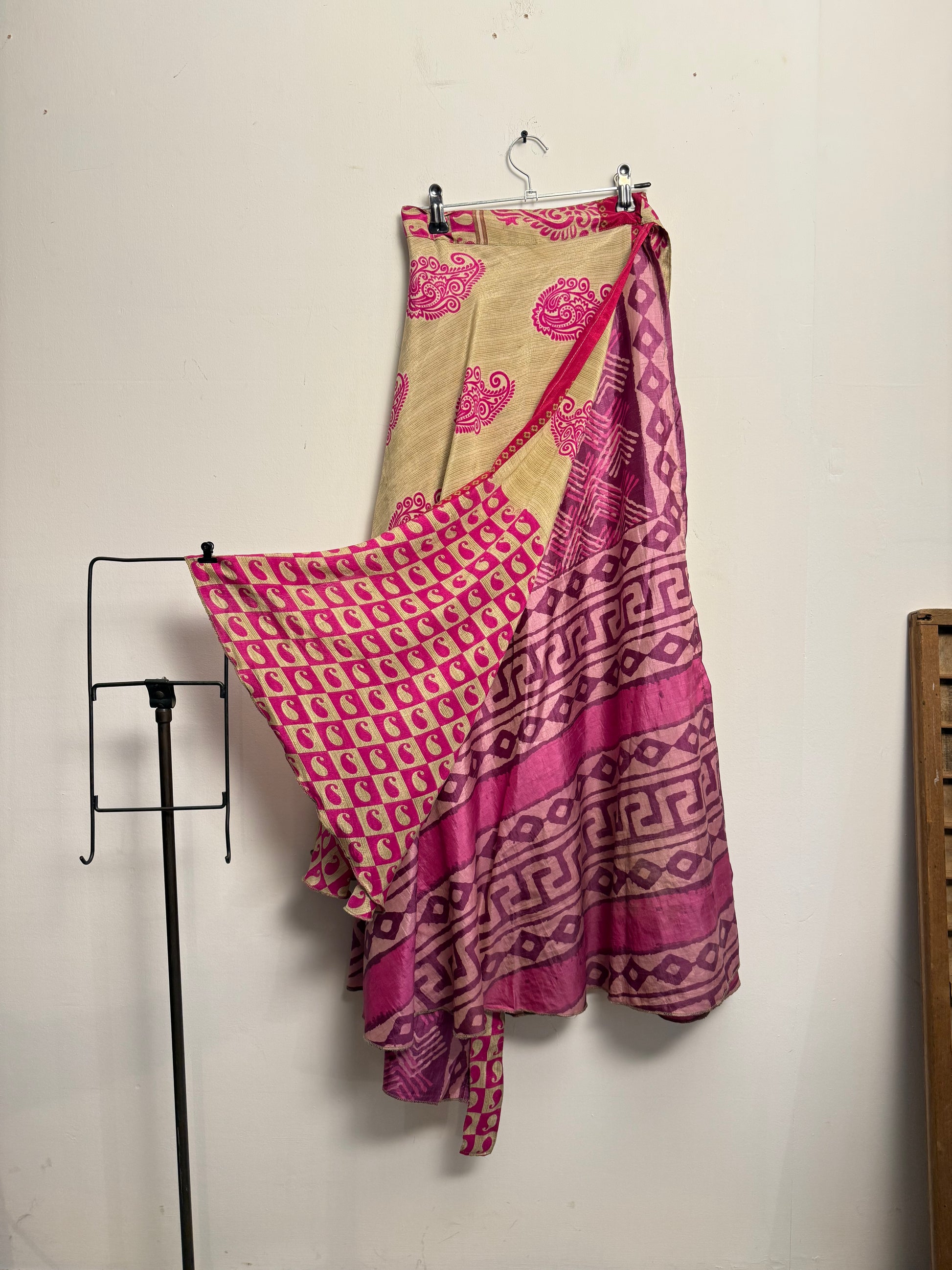 Our beautiful silk blend wrap skirts are crafted from carefully selected vintage sarees, making each skirt truly one-of-a-kind and also fully sustainable.
