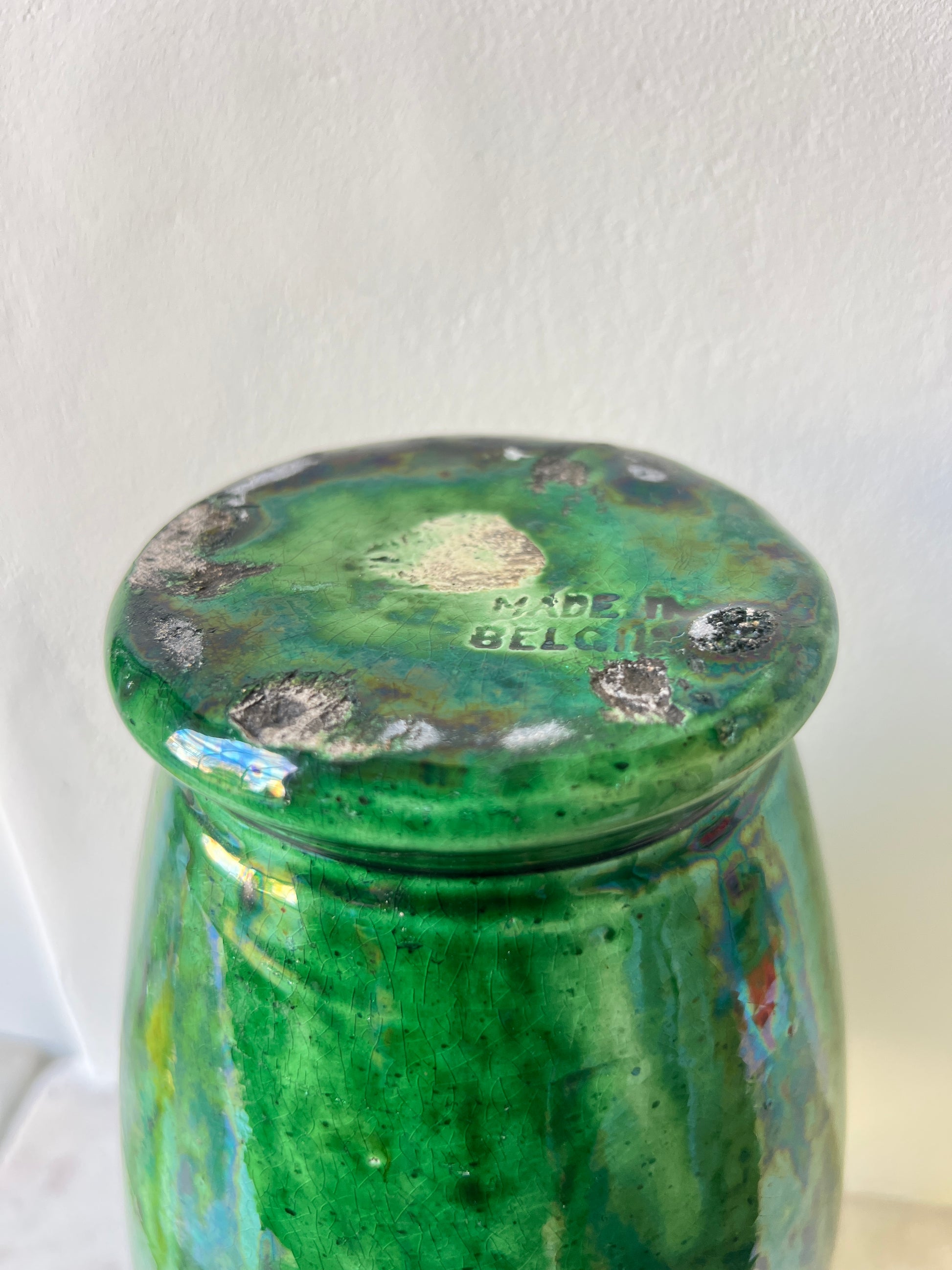 Belgian Art Nouveau Green Glazed Art Pottery Vase