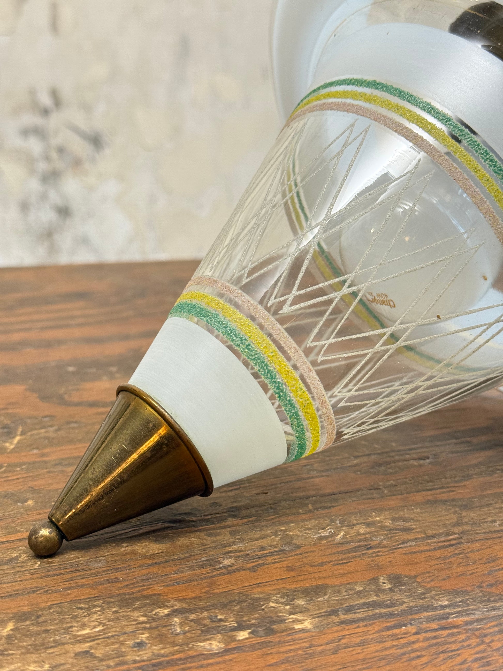 Glass shade with textured decoration.
