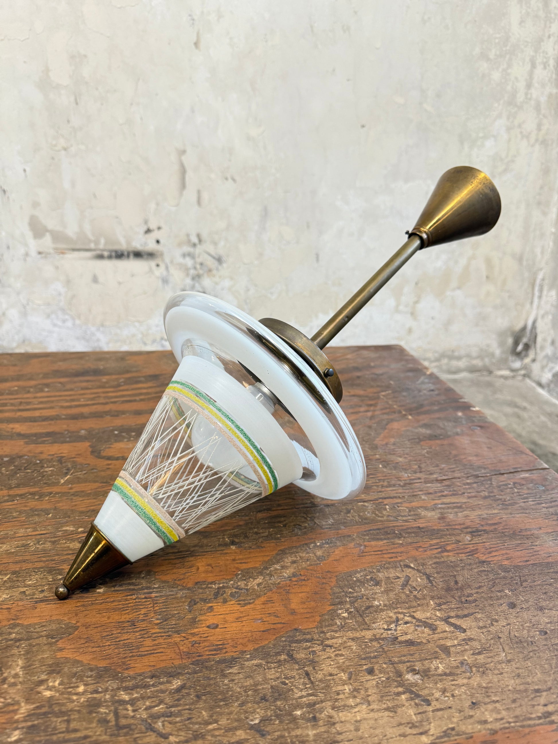 Suspended 1950's pendant light fitting.